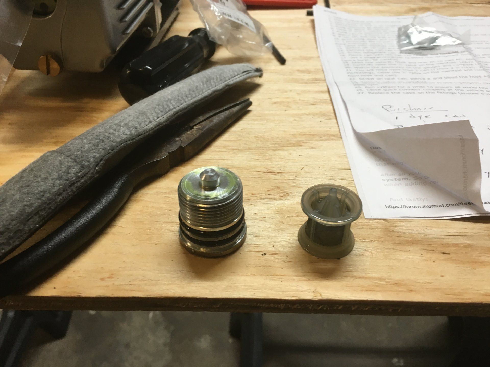 Lexus/Toyota history & parts records did not indicate dyer being replaced in this 00LX w/357Km nor in the 07LC w/127K miles done in June. So I'll assume factory switch to the plastic one piece sometime after 2001 and we're both seeing factory installed two piece with double O-ring.This is what mine looked like next to new. Id say it was original.