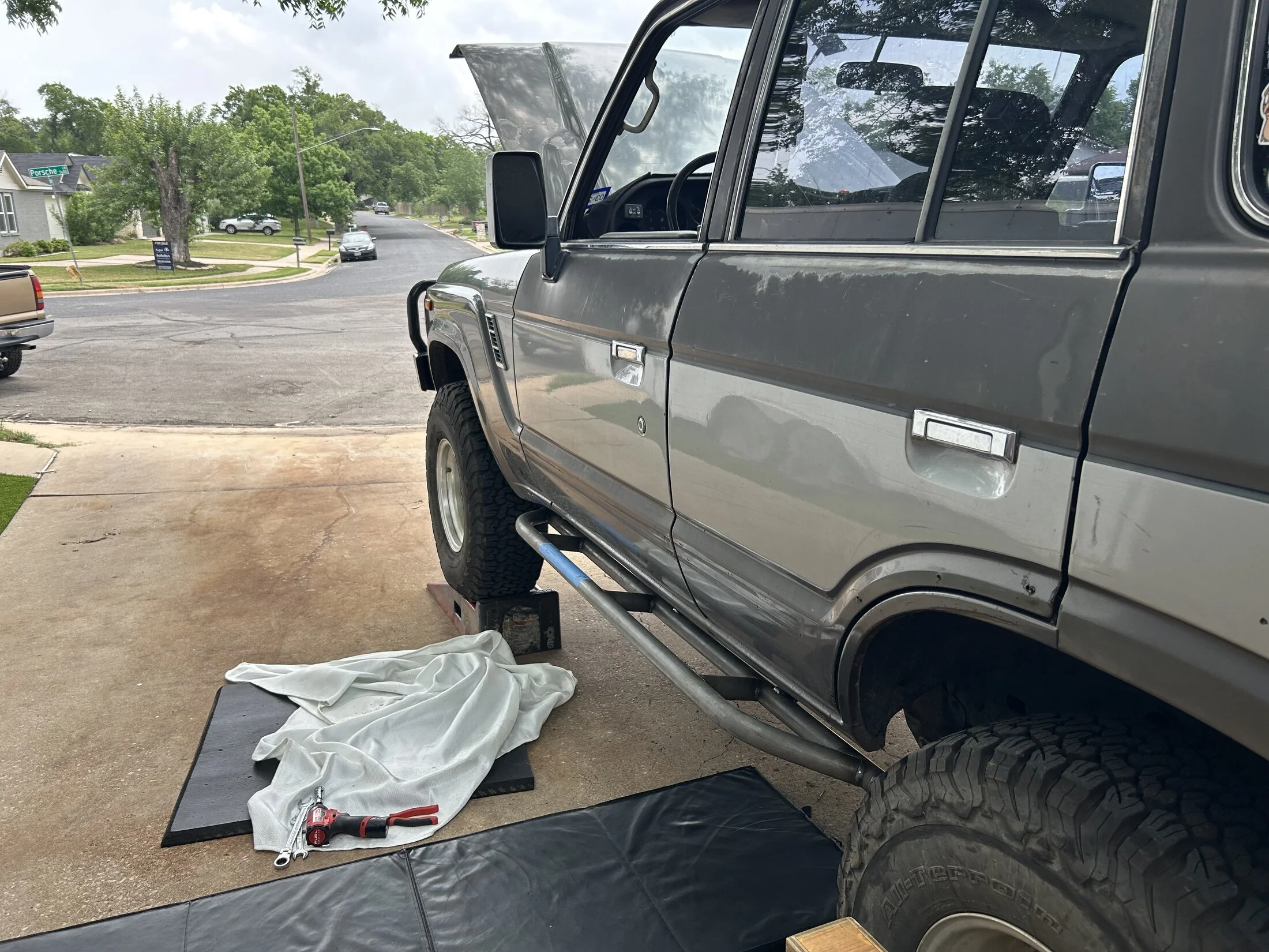Big push on the slider step project. Went over to my buddies place as he is a waaay better welder than I am. I could do it just fine but I know he’ll just dive in while I do all the cutting and sizing and stuff.