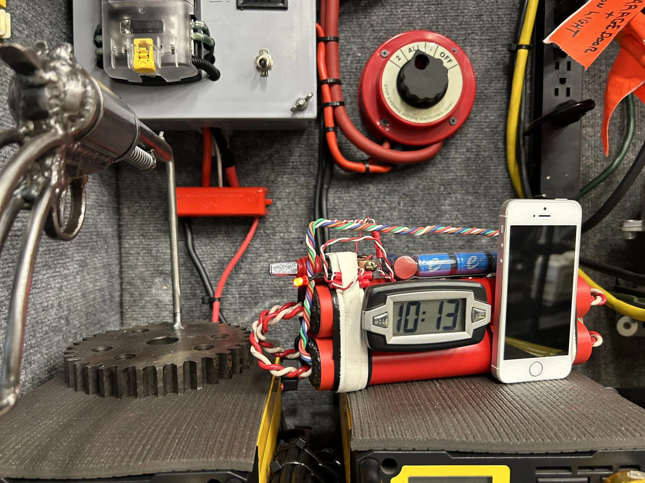 He also made a device out of an old ac compressor motor and a caulk gun that randomizes the shaking of rattle cans… it is named the Ass Blaster 3000 for some reason.