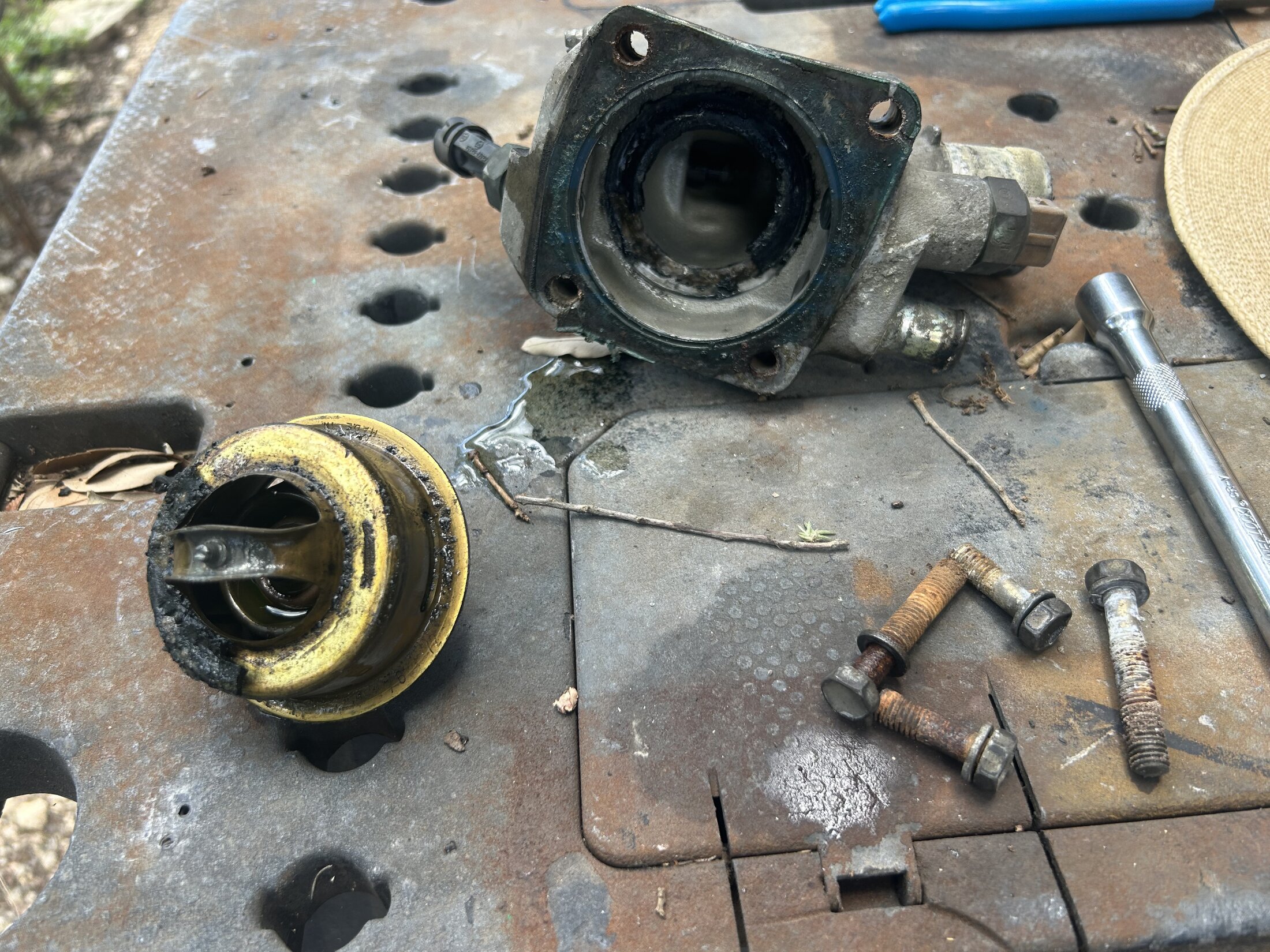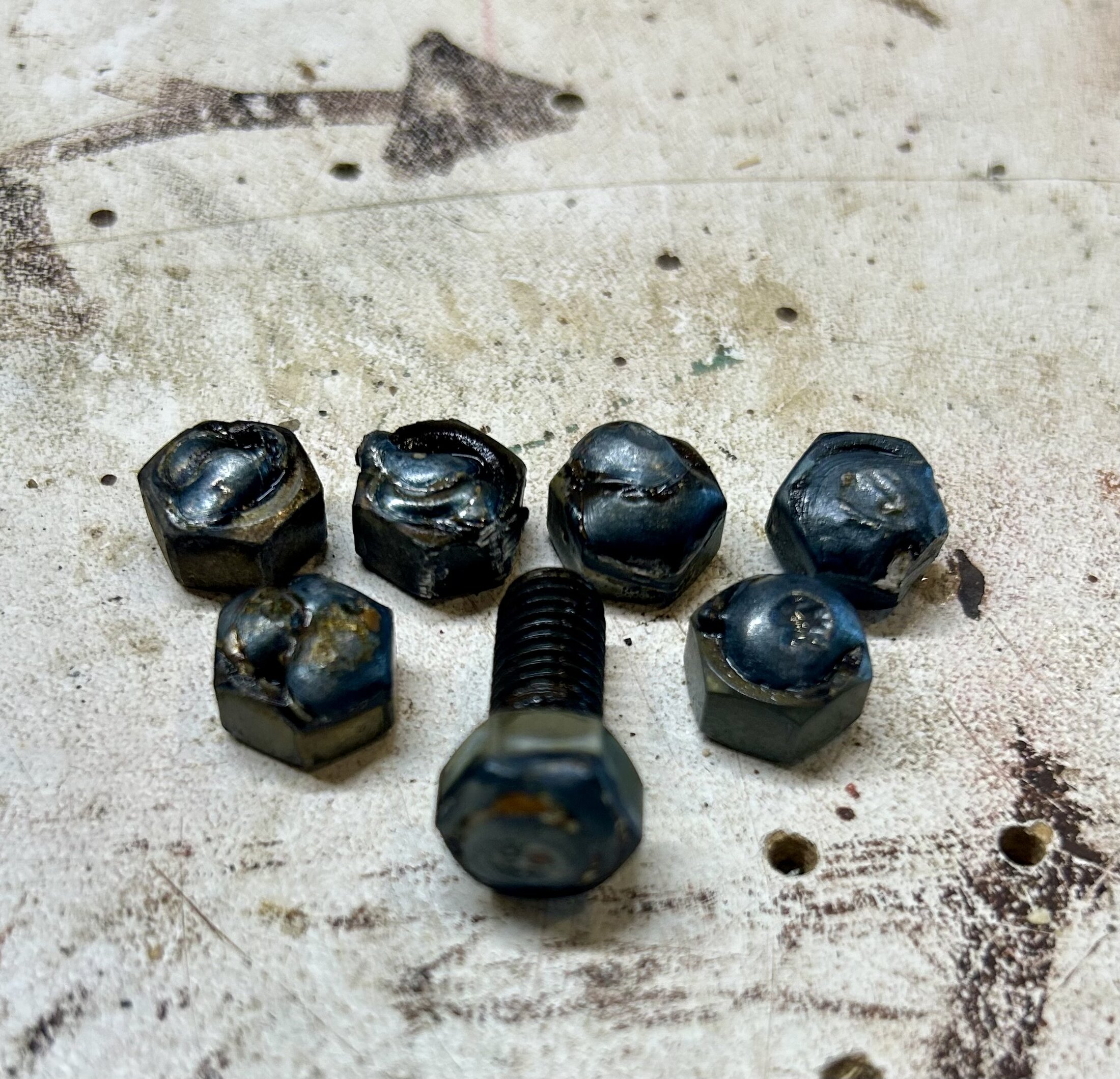 Broke the 2 captured bolts, of course, got one out with the weld a nut on trick. Other one just wouldn’t. 5 nuts worth of snapping off lil bits of bolt until it was just about flush. Tried an easy out but that failed too. Drilled and tapped it one size smaller.
