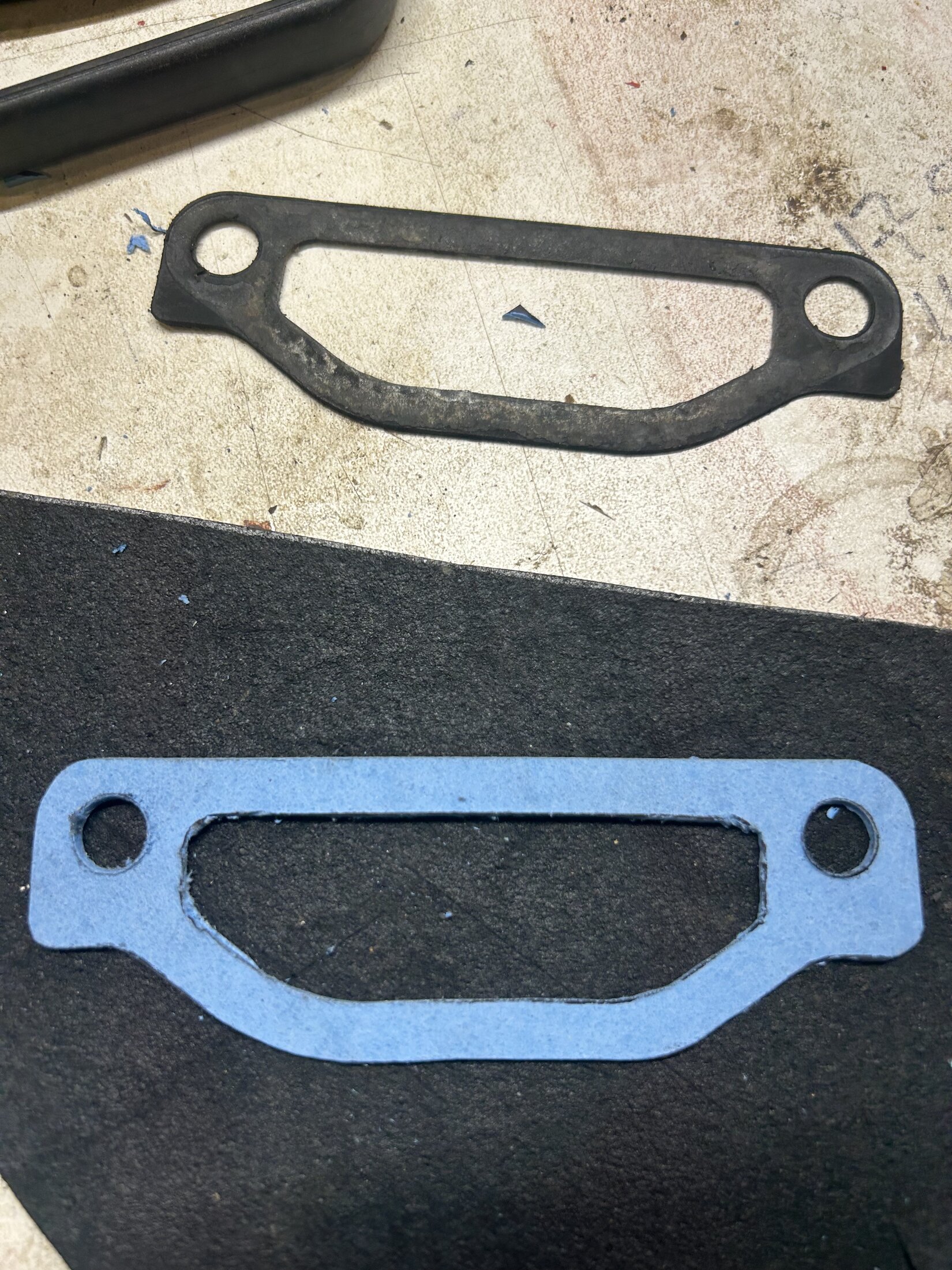 Naturally thought I had everything ordered but forgot the t stat to block gasket. Made some out a fel-pro sheet that’s for coolant. Supposedly.