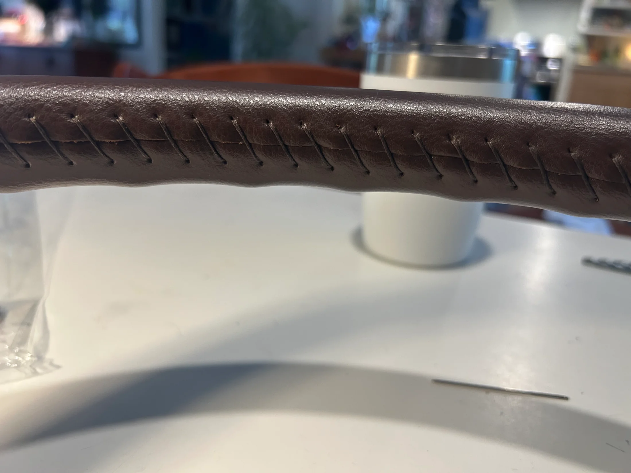 Sewed on this leather cover to gain some girth and protect the wheel.