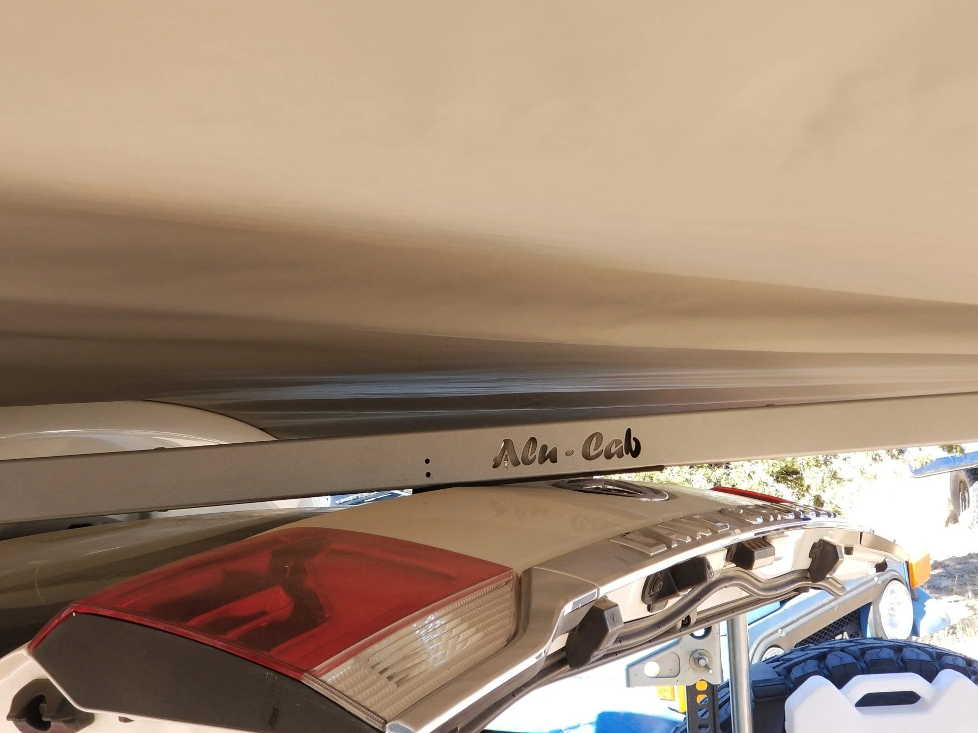 Thanks for the pictures, it really helps. I sold my 270 awning because in 4 years, I never used it, but I just didn't live in areas that made it worth while. But I move a lot, so I was looking at that alu-cab, so if go that route again, I think I'll make a bracket instead, to get the awning up a bit more and fully clear it. Thanks for saving me some money.