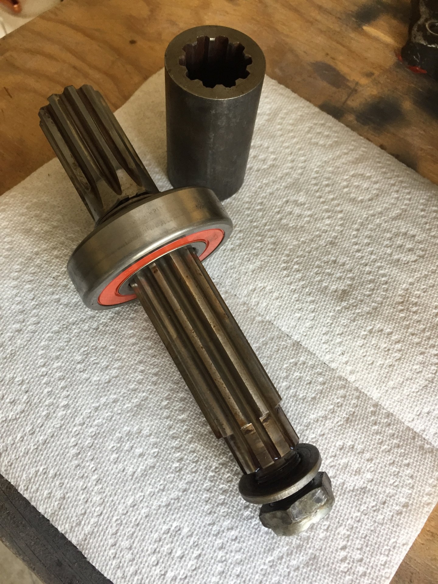 AA adapter for SM465 to 3 speed case. This is the older 6” long one. Has all the bolts, washers, and nuts. Has the 10 spline coupler that goes over the spud shaft and the SM465 output shaft. $100.
