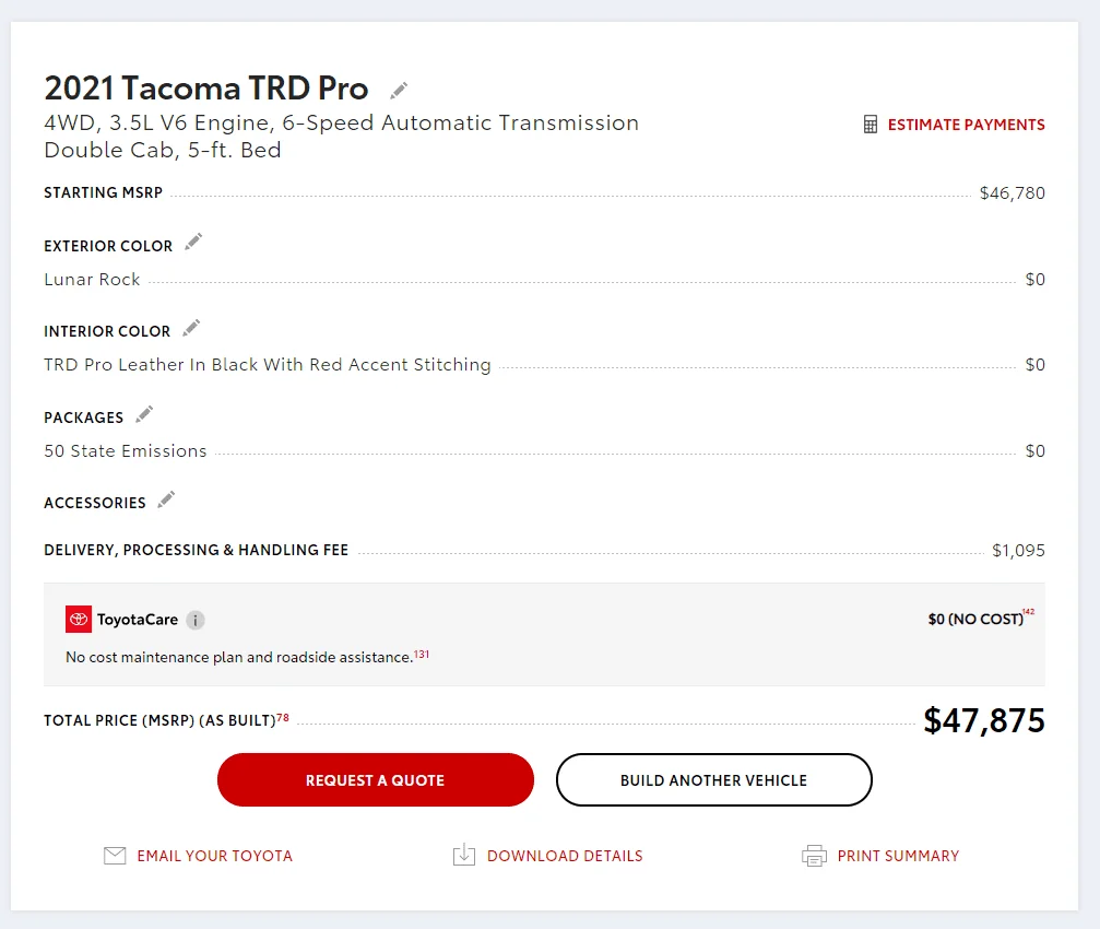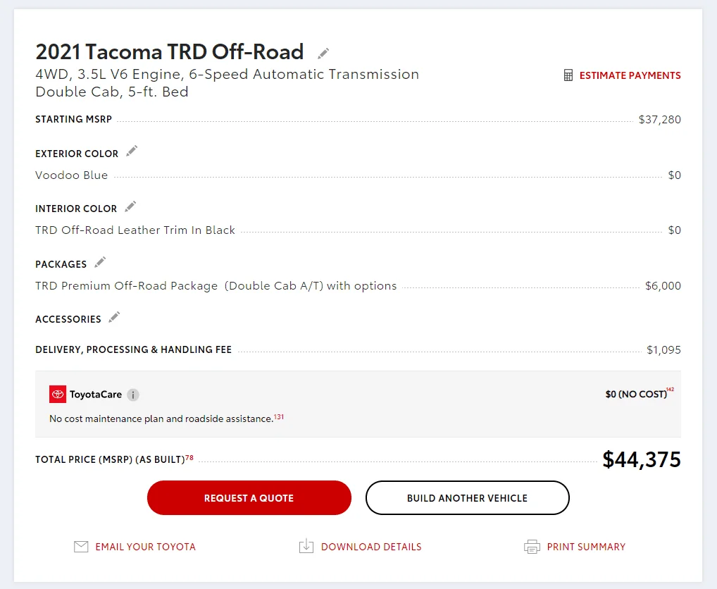 It’s standard in the TRD Premium packages for the double cab.I’m in the PNW right on the border of BC and Washington. We bought ours on the BC side and it is usually way more expensive here, but our truck listed at $37k. Is the JBL stereo standard with the premium package? I wasn’t able to sit in one as they didn’t have any local to me. We had a basic SR5 for a few days as a service loaner last year so just ordered based on what we like in a truck instead of going to sit in and drive them. We ordered a Silver Sky Metalic, but the dealer that had the only one in BC wouldn’t give it up. Pricks! So we ended up with white. I’m good with that as it’s the easiest color to polish bush scratches out of or touch up paint. I’m a realist. It’s going to get dinged at some point. I just hope the wife does the first one!