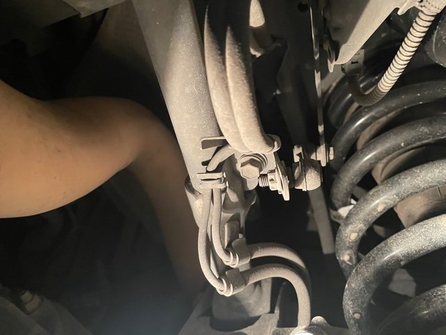 The bolt that's now in the middle of the assembly will still allow this to twist, as I ran out of thread when tightening the nut. But the top one is really right, I don't think it's going to twist at all. I'll drive for a bit then peek under there to see if it moved at all.