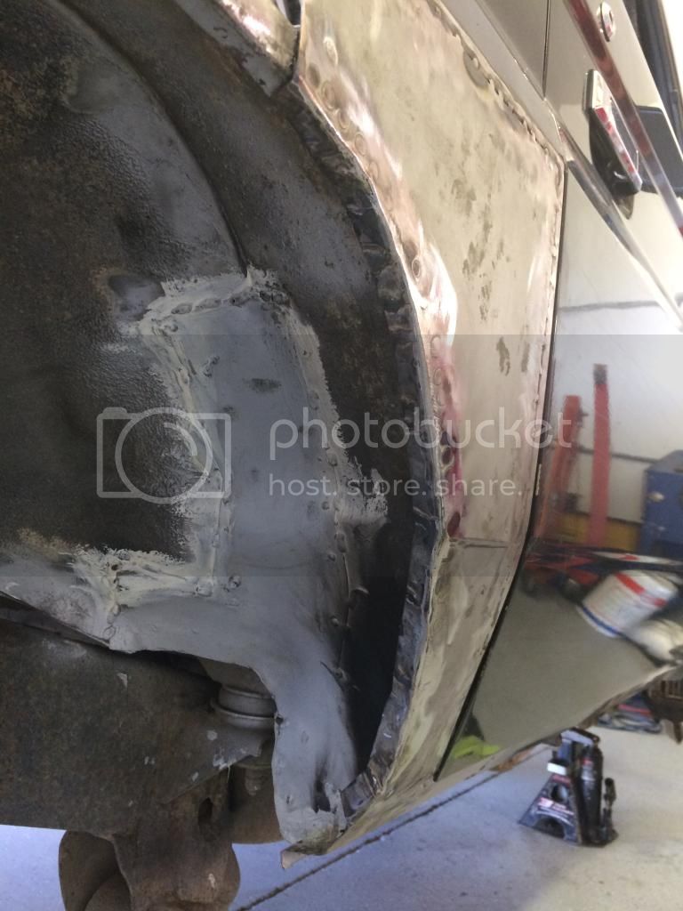 The second panel went on really easy, bending the lip was simple cause it's mostly straight. Then just a bunch of plug welds top and bottom, and butt welds front and back to the other skins.