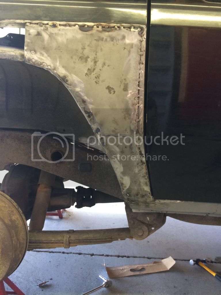 On this panel I did a bunch of tack welds on the side, and then plug welds around the wheel arch. The plug weld method was working a lot better so I did the whole upper panel that way.