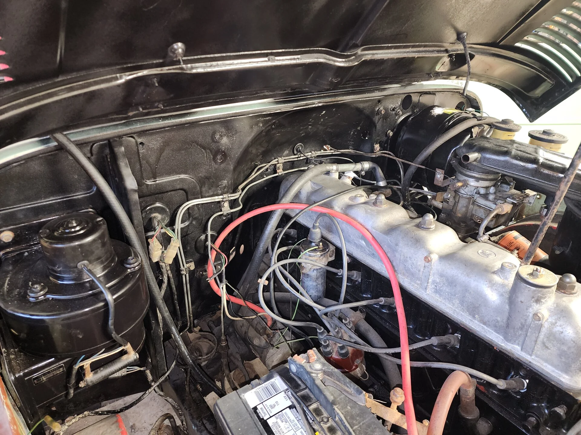 Currently I've swapped the disc brake running gear from the 76, the engine, transmission and transfer case. Got the engine running, sounds great! And started to install body panels so I could mate the dash back to the tub as they were cut in half.