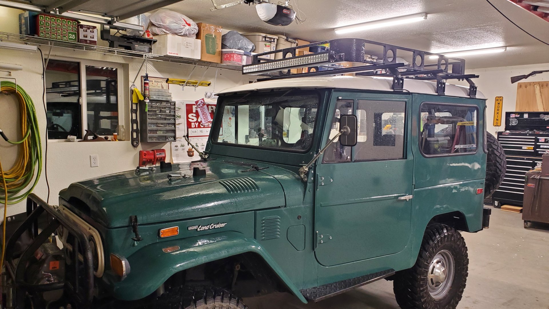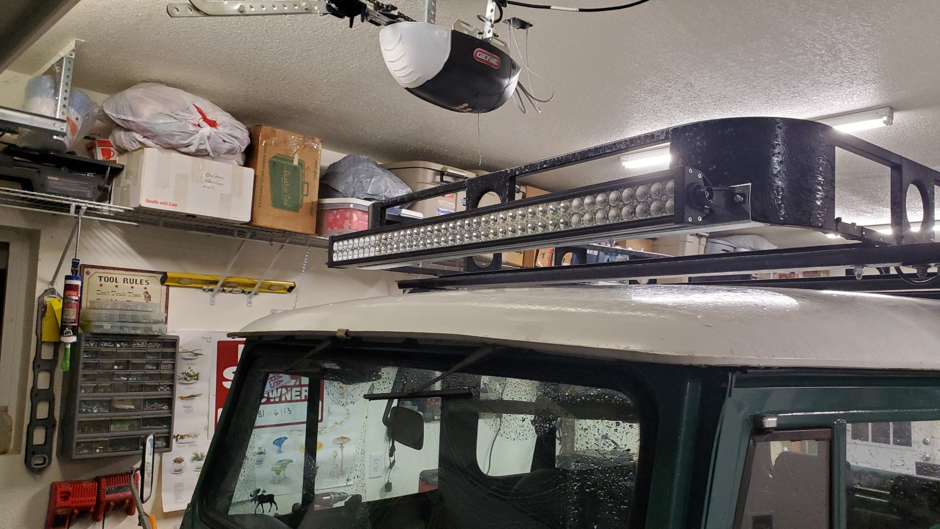 A charger port in the glove box, some LED tape lights inside the cab that I still need to install a switch for, and a 240watt light bar. This is the season for animals as big as my 40 that like to cross the road wherever they dang well please. There's a herd of elk that notoriously likes to cross the road around my house.