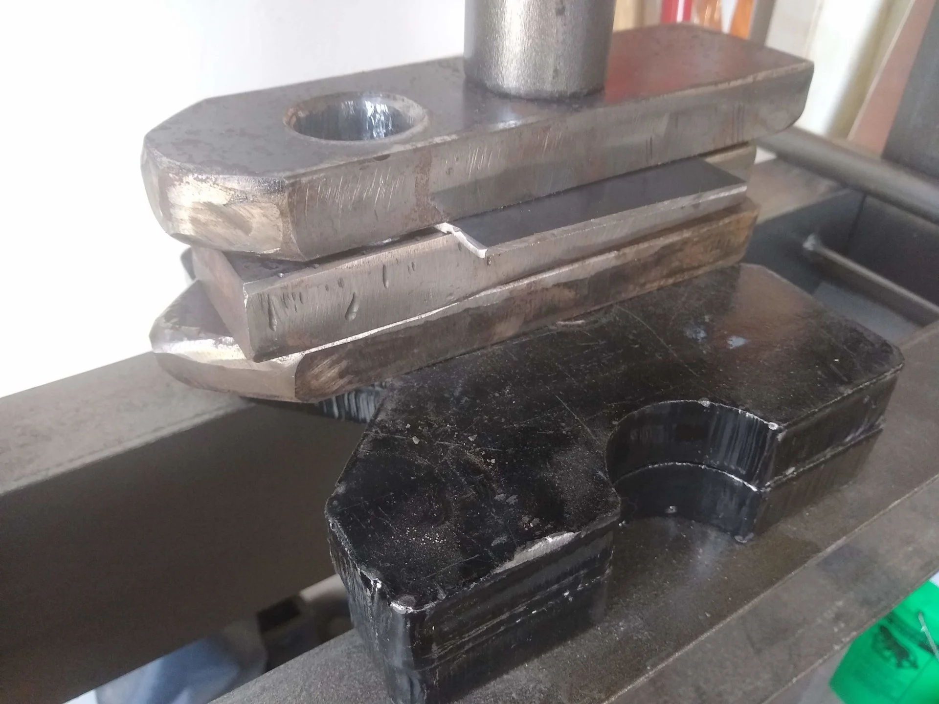 I have had to figure out how to get things done with out the ideal tool. I plan on adding a finger press kit to my press, but that will come later. In the meantime, I make due with clamping the plate between a few pieces of scrap and using a hammer to gently brake the plate along a shallow groove ground into the underside. The groove is just deep enough to ensure the bend occurs there, but not any deeper. Another check on the base plate, showed the need for some grinder touch ups to get the surface plumb.