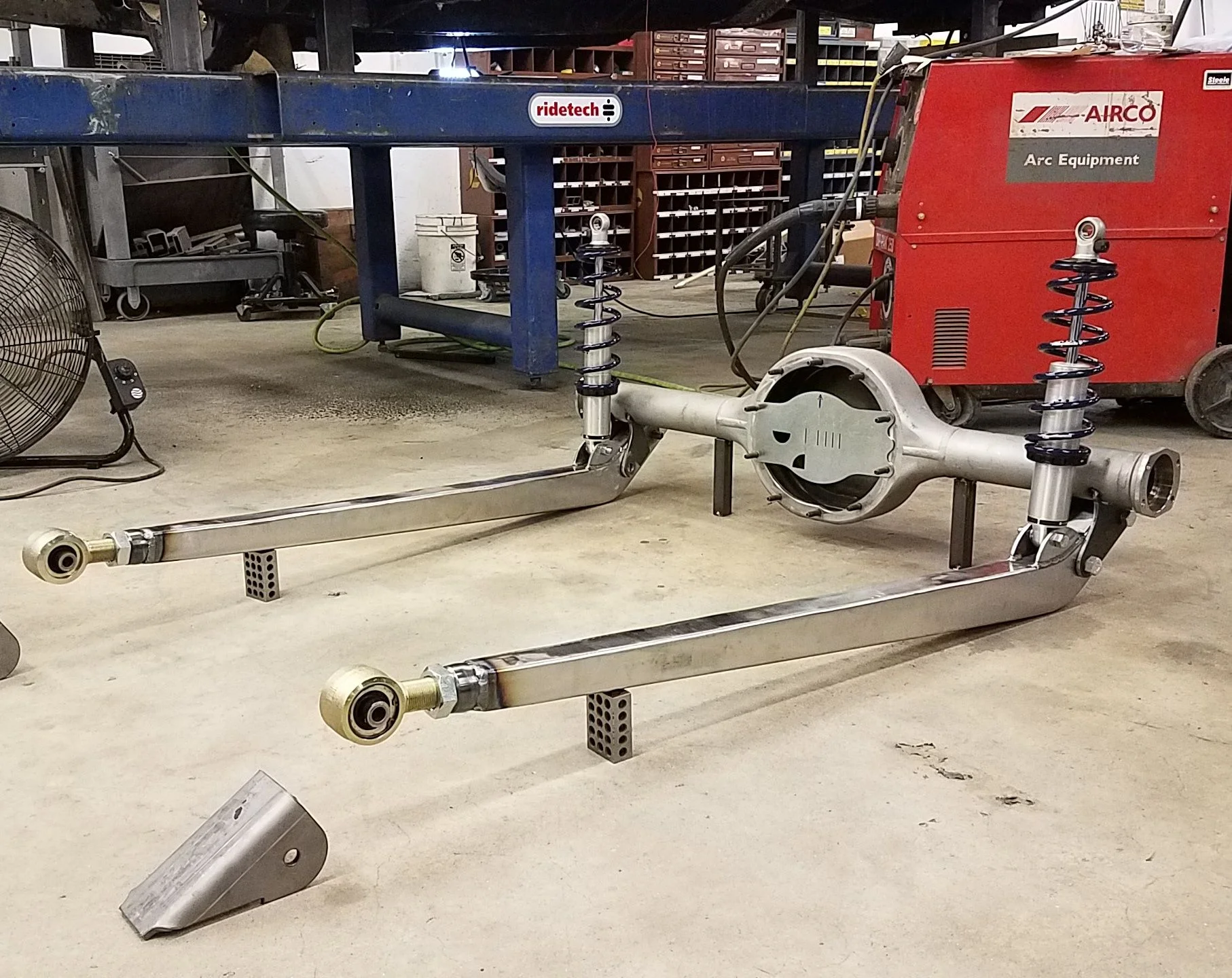 Weld a 30" long bracket to the axle right below the frame and connect it with a 1" long link. You think itll behave the same?Its a hinge. You can change the shape of one leg (which is what hes doing) and it will pivot in the same spot.