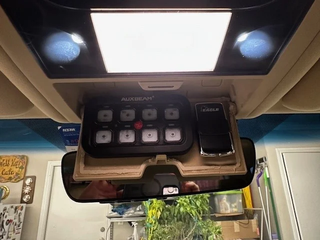I like the switch panel in the sunglasses holder idea. There is a thread here with plans to 3D print a panel to fit in the switch module in that cubby. But also the cubby I use the most is the sunglass cubby, so I don’t want to lose it. Therefore I decided to attach it to the coin cubby to the left of the steering wheel in an LX.