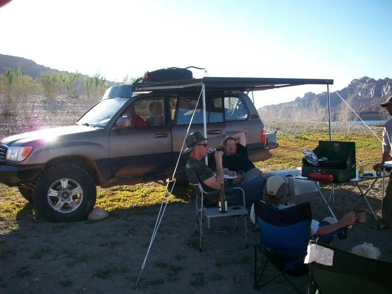 How has the Fiamma awning held up over the years for you? Would you recommend it?I bought a Fiamma 45 last year, mounted it to the Front Runner rack and use it all the time. Sometimes even during a trail-side lunch stop on a warm sunny day. The Fiamma is a little different in that it cranks out...like fully deployed in 30-seconds (a little longer if the wind is blowing and it needs to be guyed out...). So that adds to its usefulness for us.