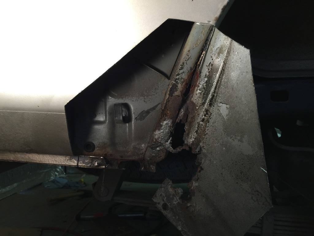 Started with the inner repair near the body mounts...Sorry, I forgot to take photos and didn't realize it until I got some undercoating on the repair - my photo skills got better too