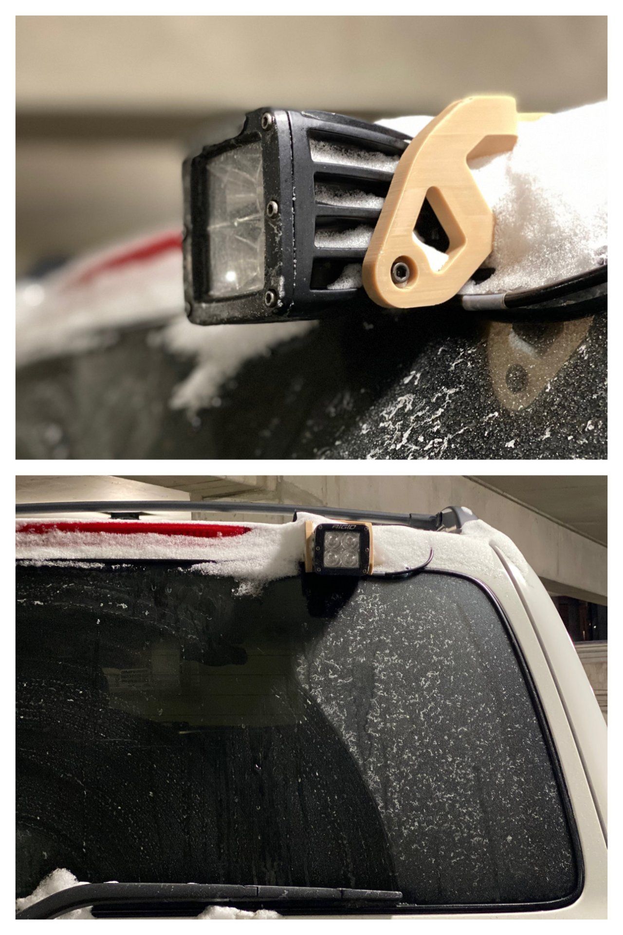 This is a print of the foglight mount using 1.2mm nozzle. I have been finding a good print configuration for this nozzle. All previous products were printed with 0.4mm nozzle. Parts printed with larger nozzles are significantly stronger. The strength of 3D prints are mainly dominated by the wall thickness rather than the infill ratio. And large nozzles are capable of extruding material much faster. This cuts down the print time almost to 1/3. The major drawback of using large nozzles is the low resolution. But exterior parts are usually bigger and do not have fine features that need the high resolution capability. For exterior parts, I am going to print all future parts with the 1.2mm nozzle. After tuning the nozzle temperature (controls viscosity of the material), extrusion multiplier (controls the amount of material extruded), pressure advance ( compensate for the elasticity of the filament and the extruder), etc, I am happy with the result.