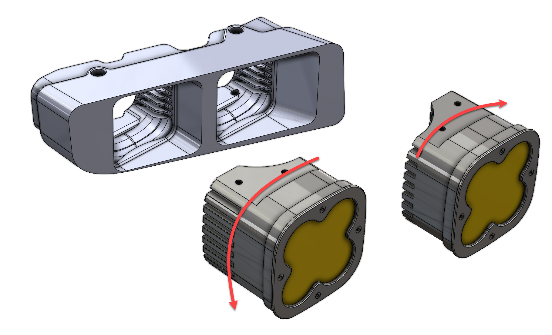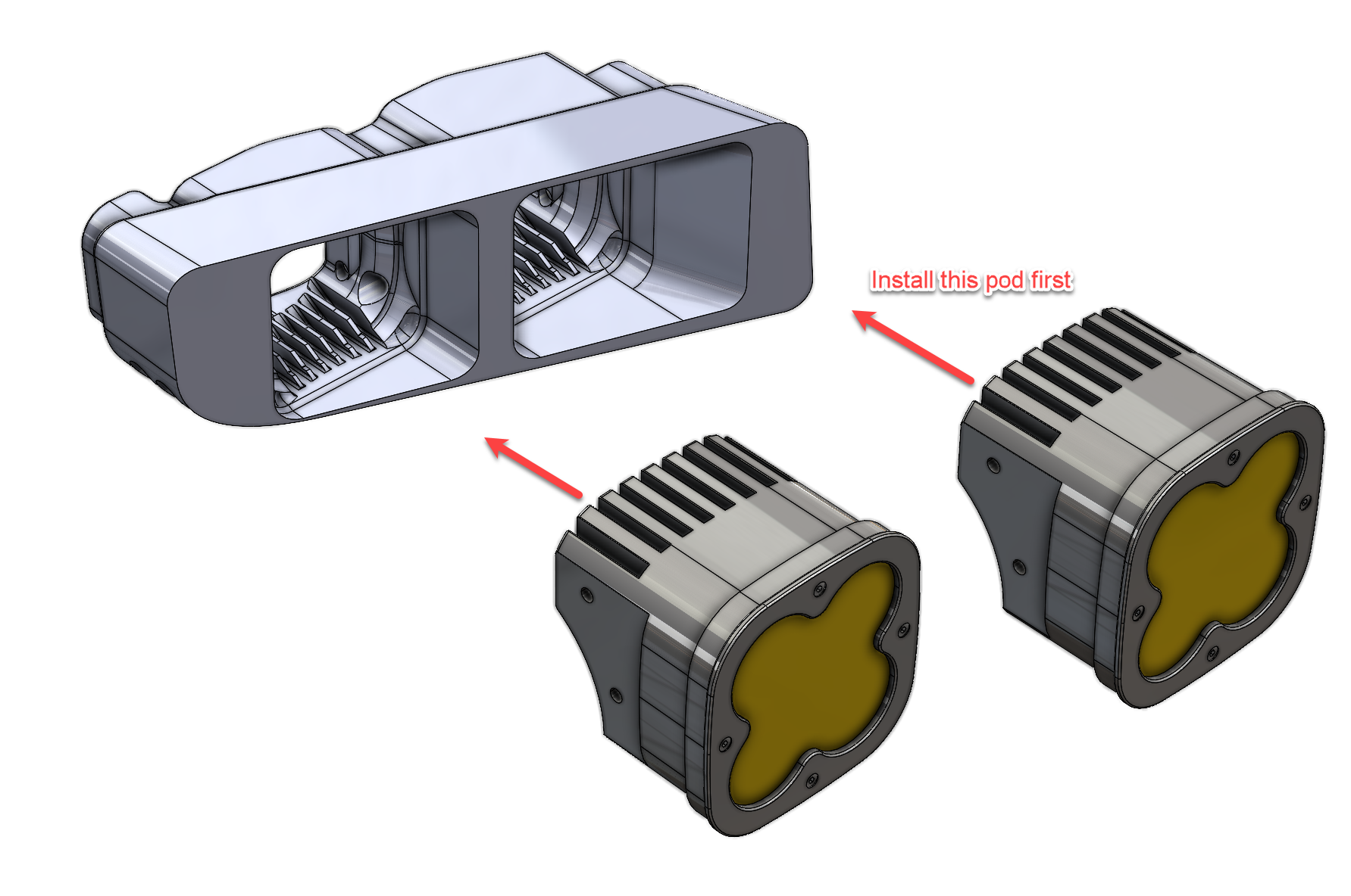 (The pods depicted in the figure are Baja Designs XL80, not Squadron models. They are utilized solely for illustrative purposes. CAD credits for the XL80 go to Peter Scolaro on GRABCAD)