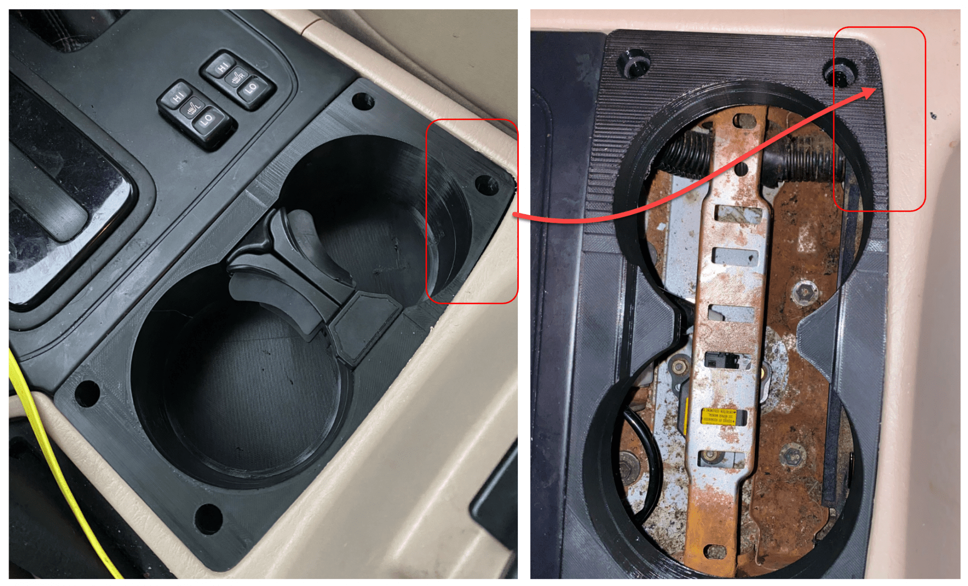 - Four holes remain, e.g. not a press-fit piece, the cupholder requires the four screws.