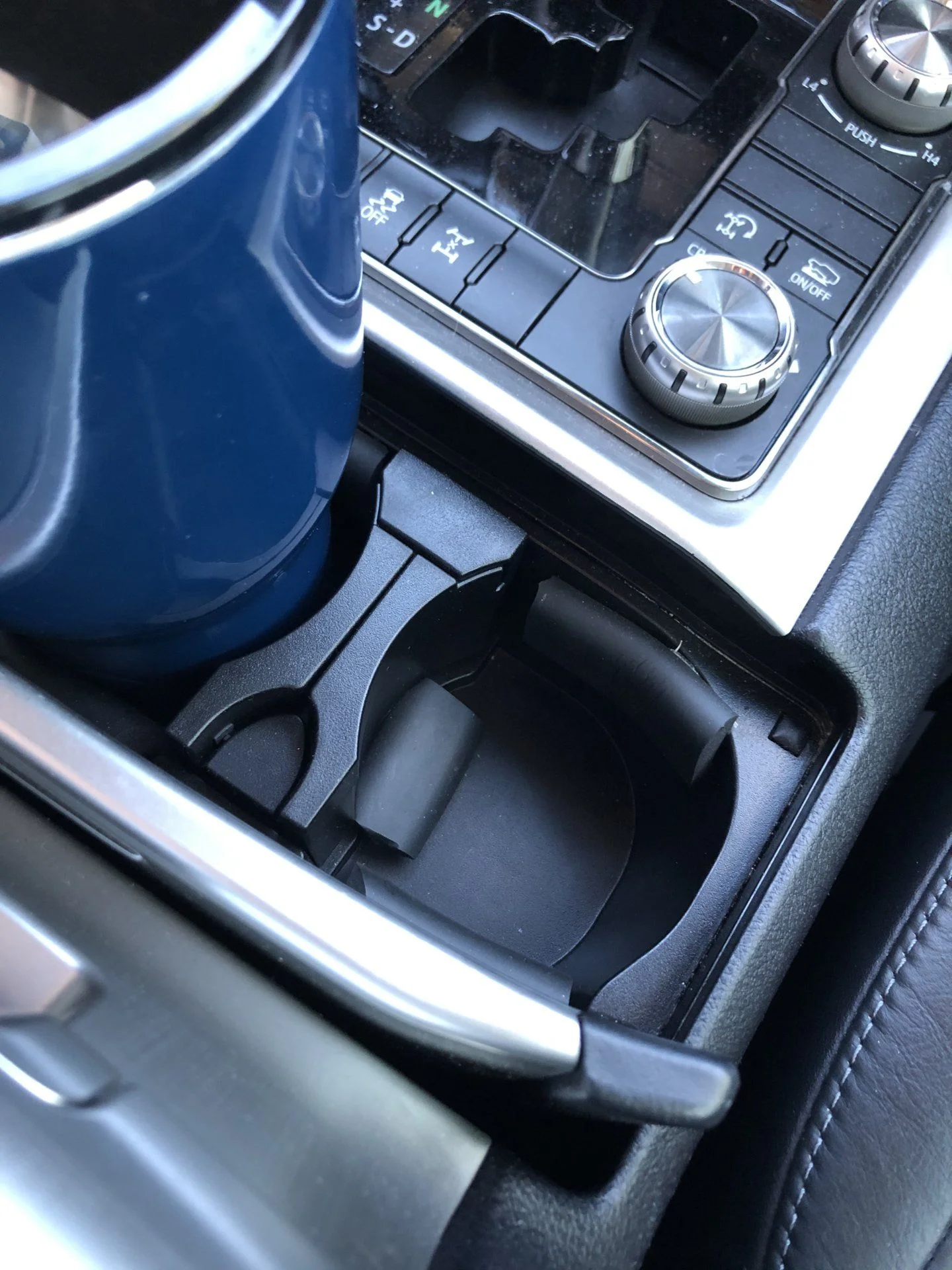Lono time lurker and first post. 2016 LC200 (Silver) with no nickname yet (5 y.o. will likely do the honors). 1500 miles on the beast. Coming from a GX460 there are numerous pros / cons to each vehicle. One “Con” to the 200 was front cupholders. Way too much action for my liking. I had leftover table edging(?) to lesson the blow when aforementioned 5 year old (between 11 months and 3 y.o.) liked to run into tables. Fearing eye patch was inevitable I reviewed Amazon baby proofing items and found this 45 degree edging held by 3m tape. Cut 45 degree in middle to make strips. Worked great (no eye patches yet) and I had a lot left over. Placed two strips on each side (north and south) and one at bottom (overkill) and voila a custom cushioned drink holder. Little goes a long ways. Holding 32 oz. tumbler as seen in pic. Likely thought of already by others but a cheap workaround and does wonders.
