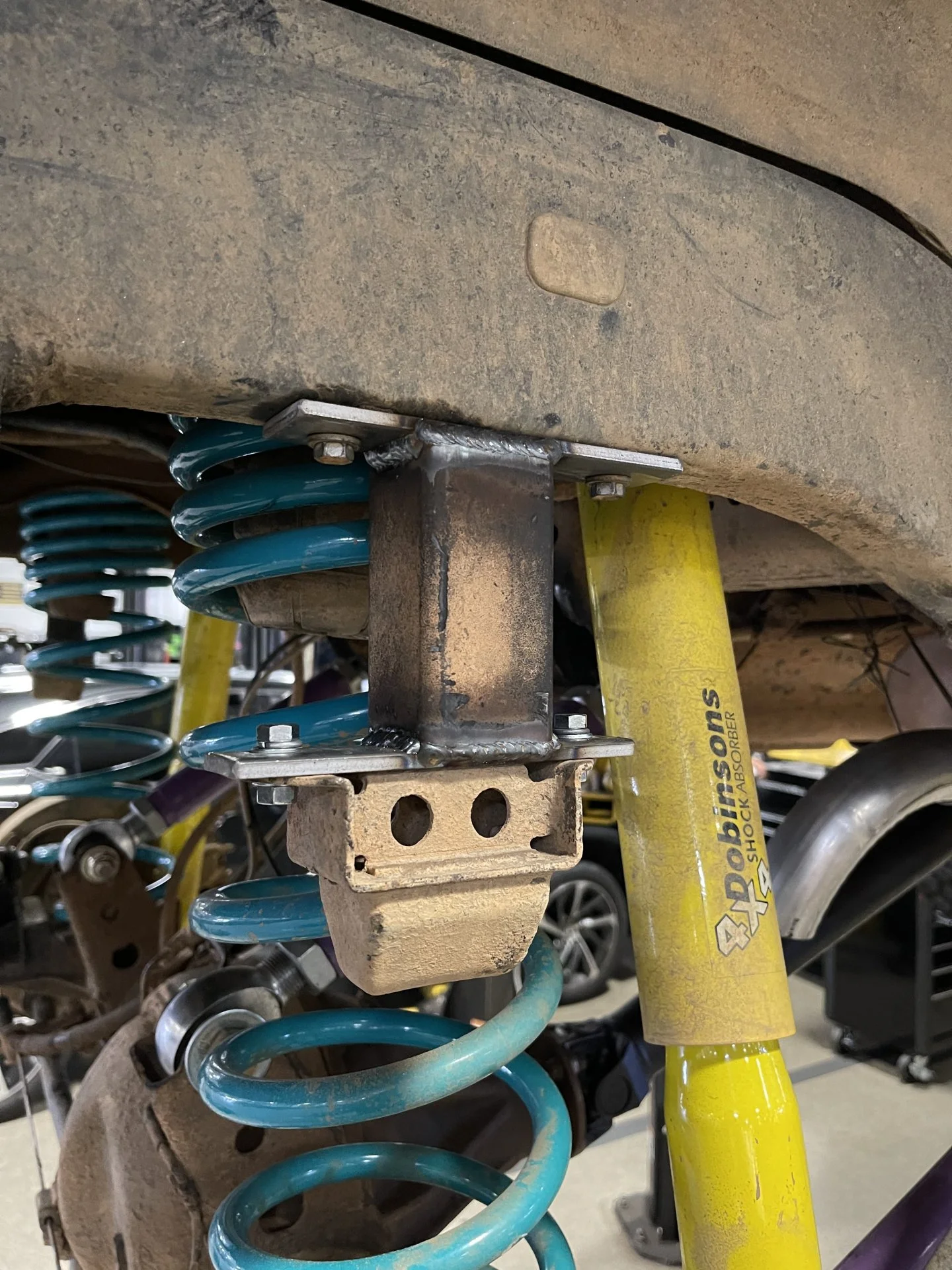 I also added some lights to the hatch for an upcoming camp/wheeling trip. I also made and installed some quickie bump stop extensions to help keep the rear tires out of the body until i can get around to cutting the body again. I added some homemade spring retainers to keep the rear coils from falling out on the trail. I modified and reinstalled my swing arm and tire carrier..