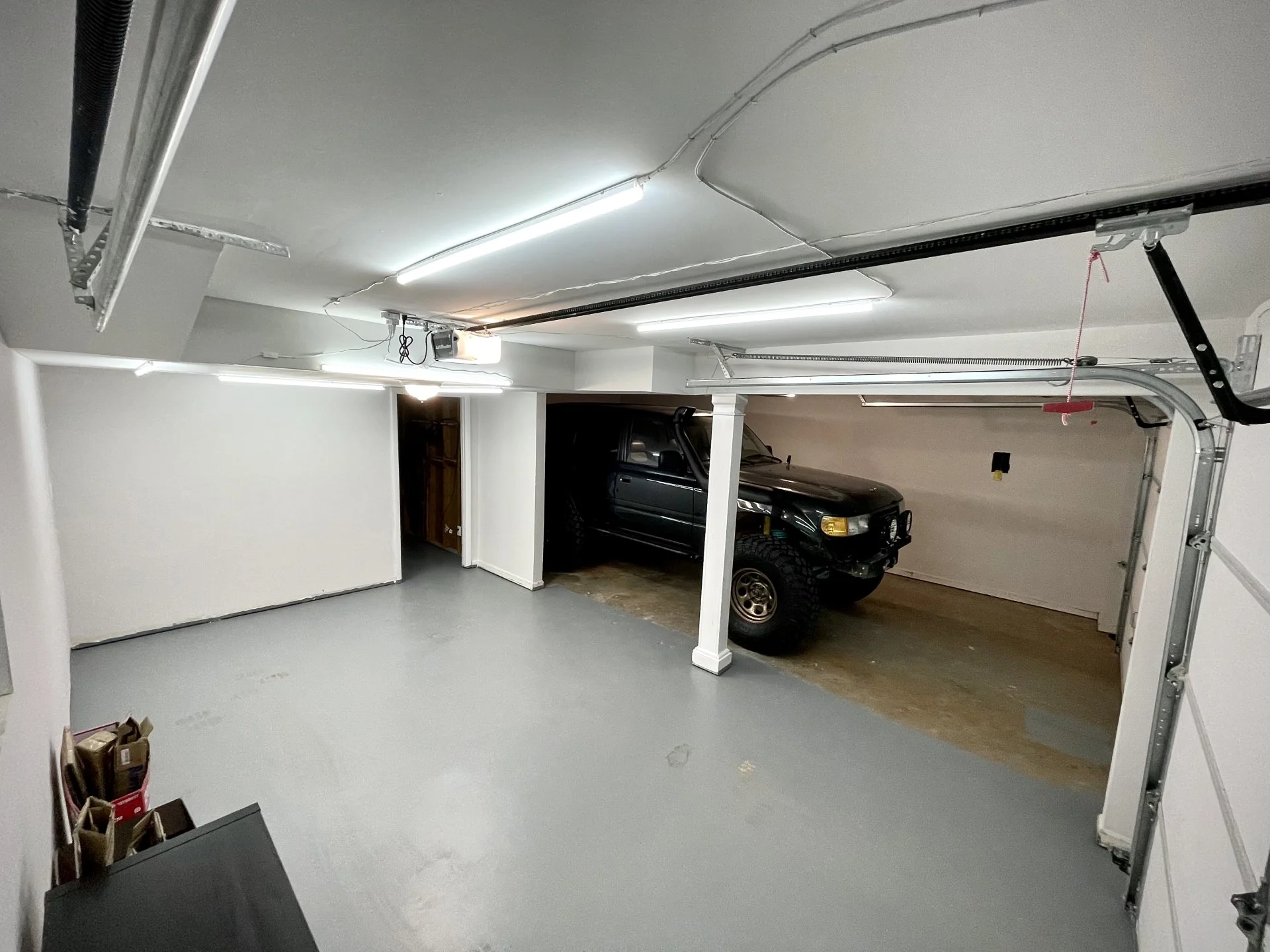Ive painted(and now partially ruined) half of the garage, and installed a third of my lighting system.. im excited to make this a little workshop while i build a 40’x60’ shop in the back yard..
