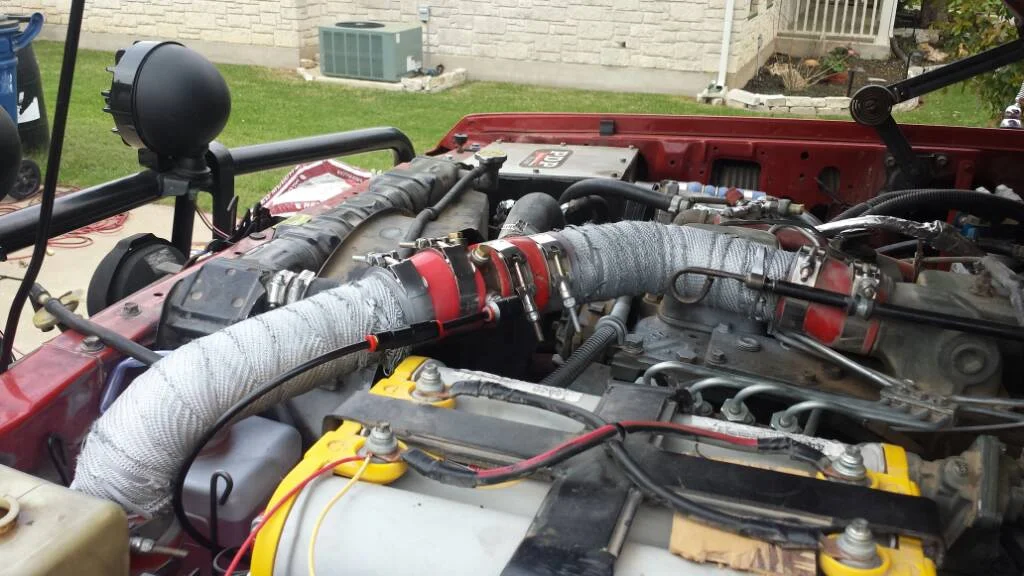 Had some free time before the storm so I decided to see what benefits there are by wrapping the turbo pipes from the intercooler to the intake manifold. Then I sprayed it with high temp silicone paint. After that I wrapped the AC lines better.