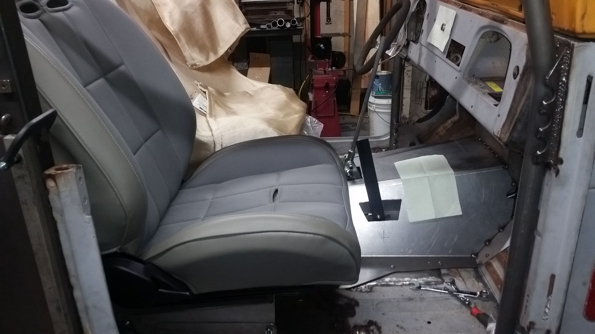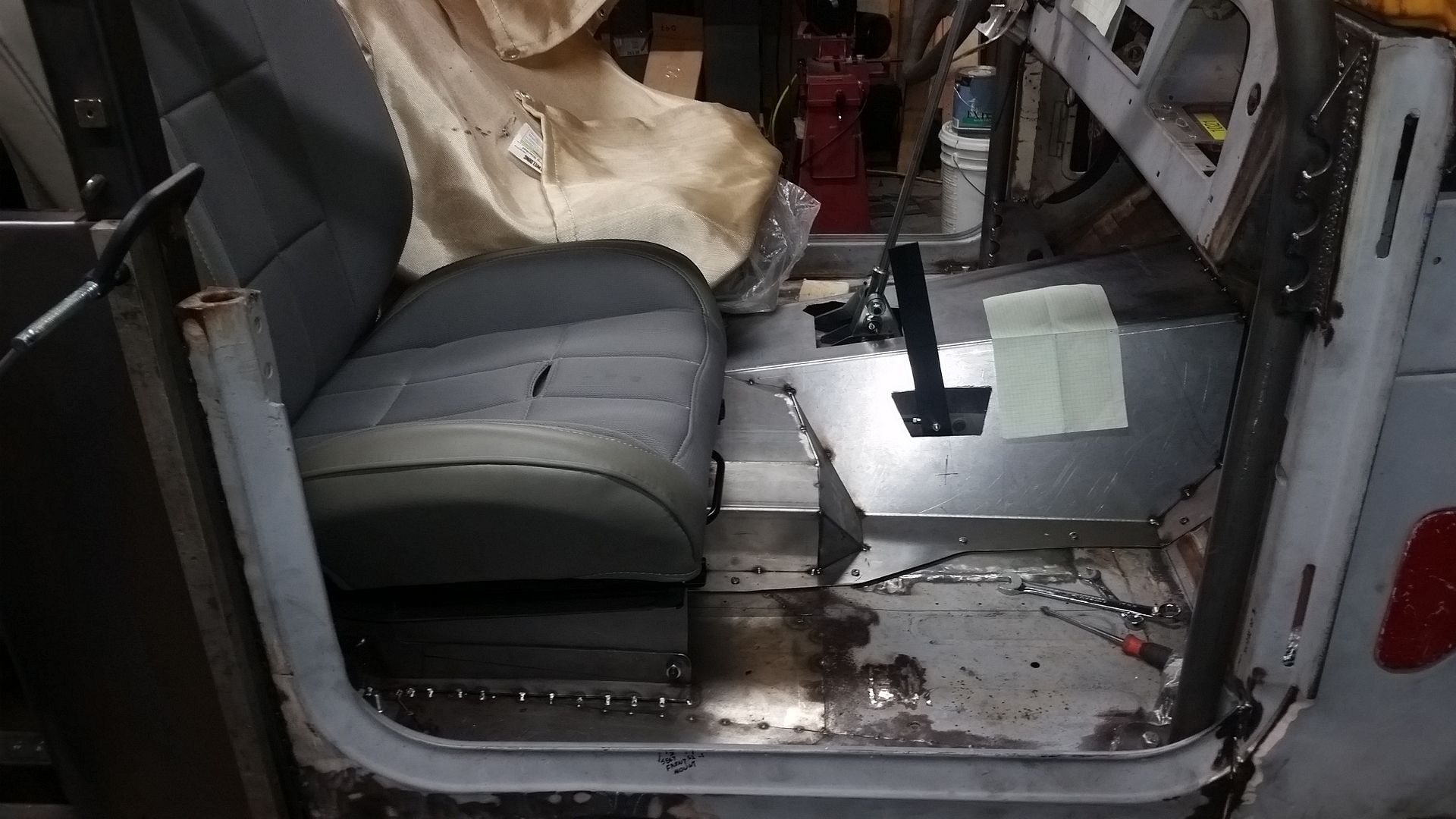 The only complication is going to be the inside mount on the passenger seat over the transfer case hump. I think that bracket system is going to have a few more parts to allow the removal of the tunnel as intended. I will start with the same base bracket shape that matches the others, but I will have to take a BIG notch out of it for the t-case.
