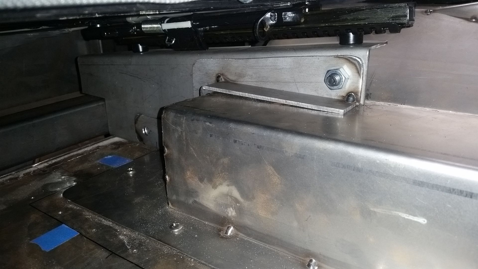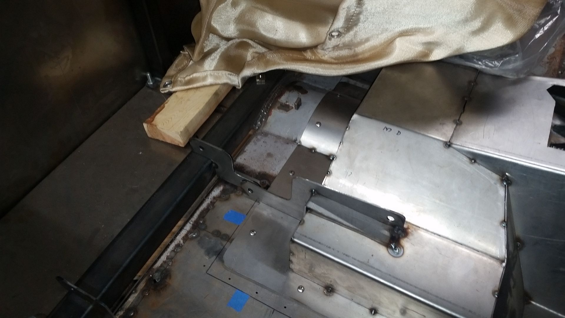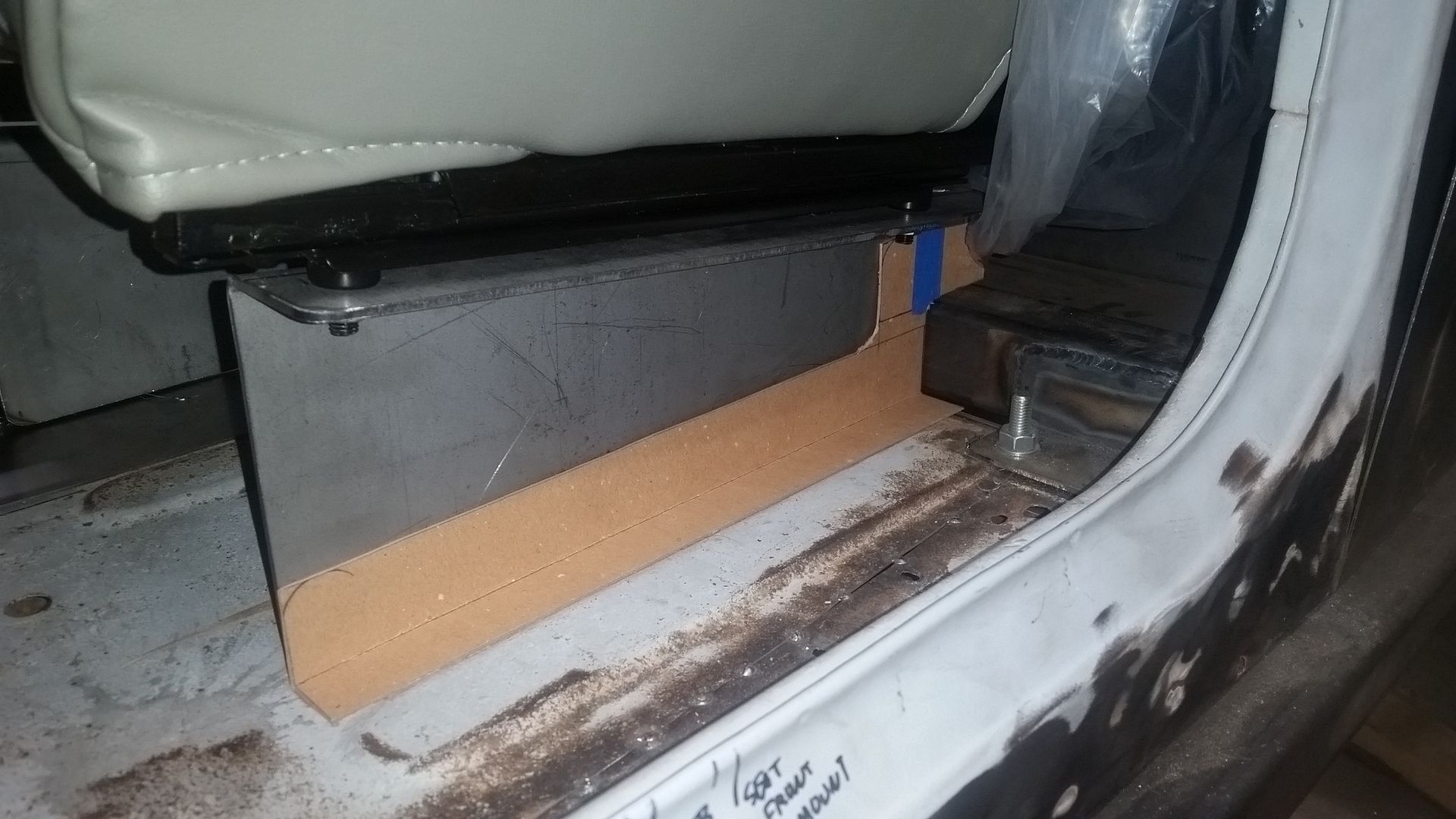 I put the seats back in and set them in place with the complete tunnel so I could pattern out the brackets. It wasn't as simple as I thought it was going to be. There are a few places where the seat slider is pretty tight on things.