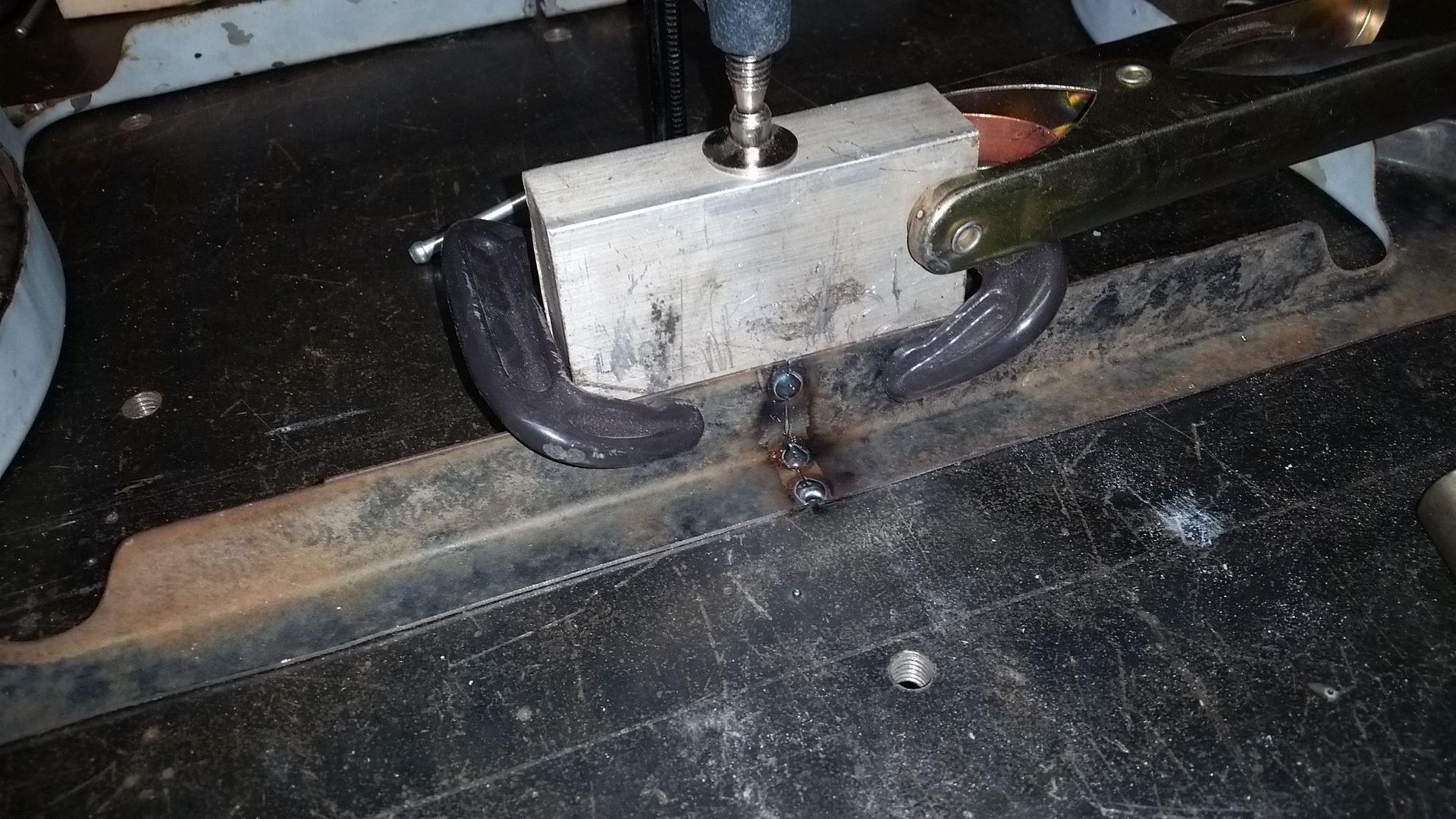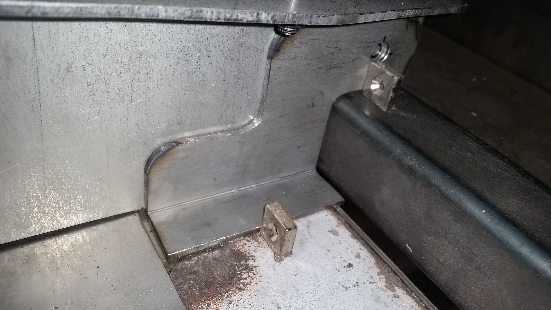 I was just going to make a big U-shape bracket that was going to bolt to the seat, but that would have put the legs of the bracket outboard a bit too far. I decided to do individual L-shape brackets that will bolt the the seat mounts but the vertical leg of the bracket will be to the INSIDE of the seat. This moves the leg away from the tunnel on the inside slider on both sides.