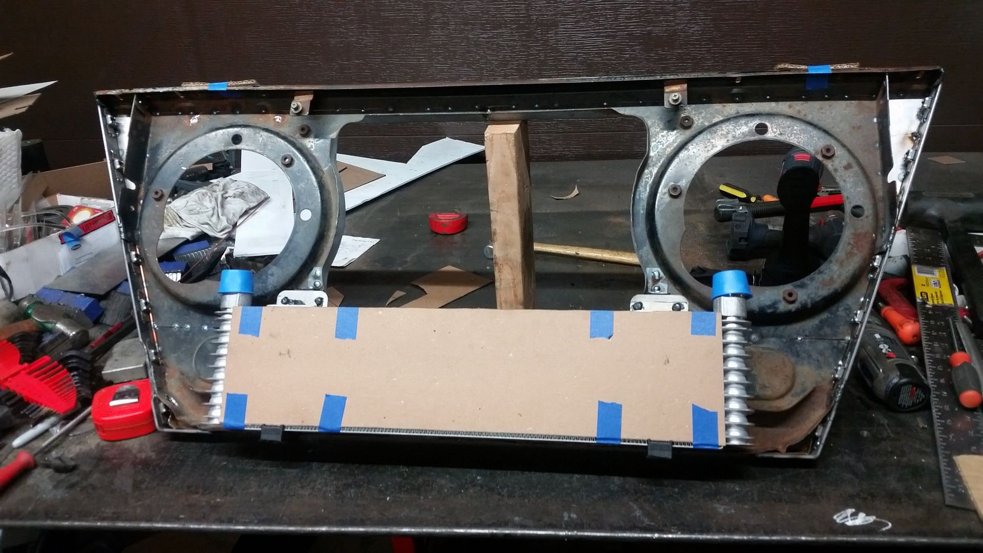 All the mockup work on the new grille re-shape is done. I was also able to get the passenger side trimming and flange done. I also narrowed down headlight bezel to fit the new grille.