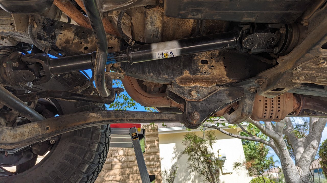 Note: I'm also aware that my rear driveshaft is currently installed backwards from the factory orientation. Mine has the slip yoke pointing towards the transfer case, not the rear differential. All I can say is that's the way the rear driveshaft was when I purchased the truck, and I've had three good shops work on it since then, and nobody has recommended swapping it back around. Swapping the rear driveshaft back around will probably be the next thing I try, but I'd be interested to know if anyone else has ever found this to be a source of vibes.