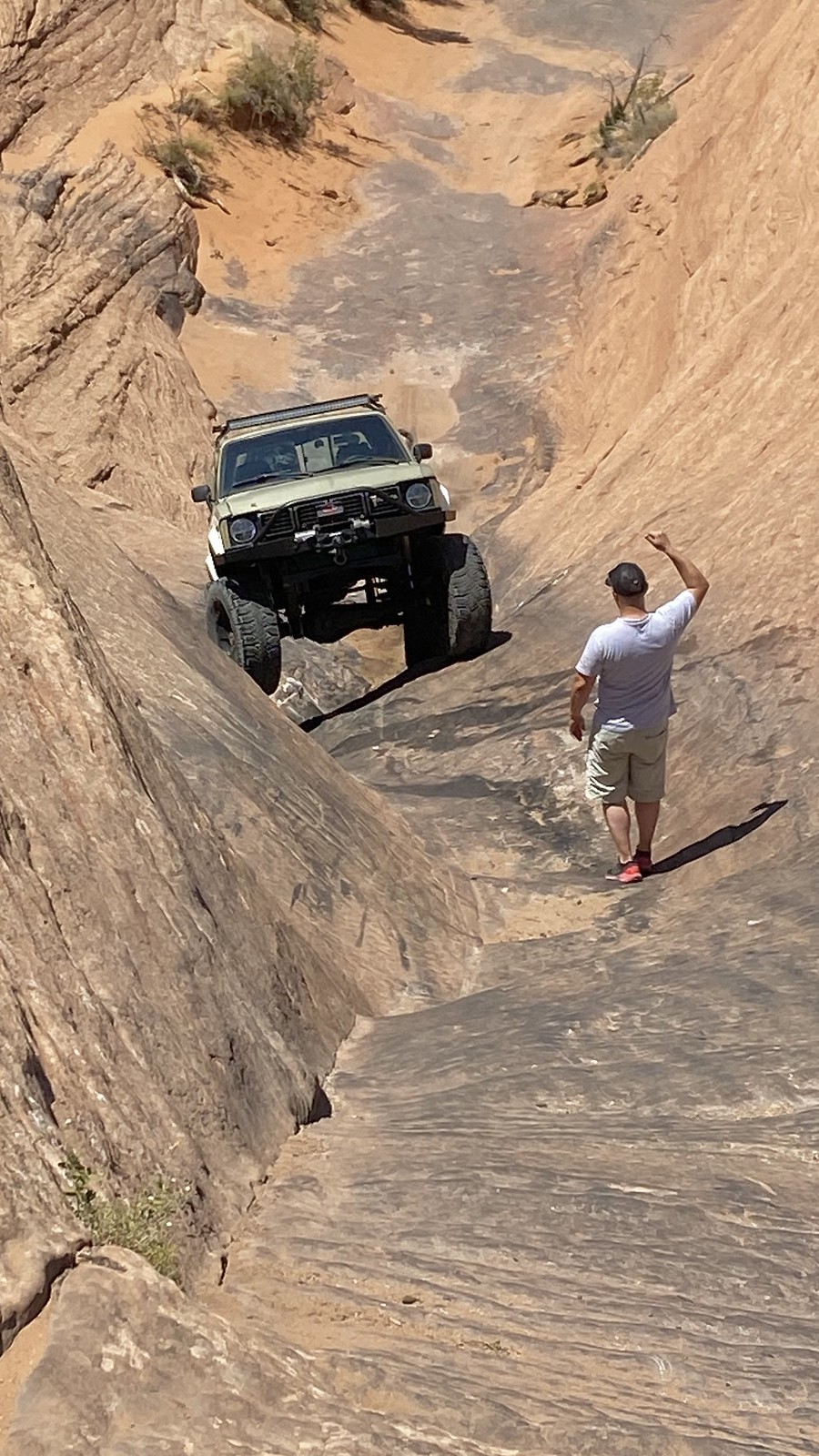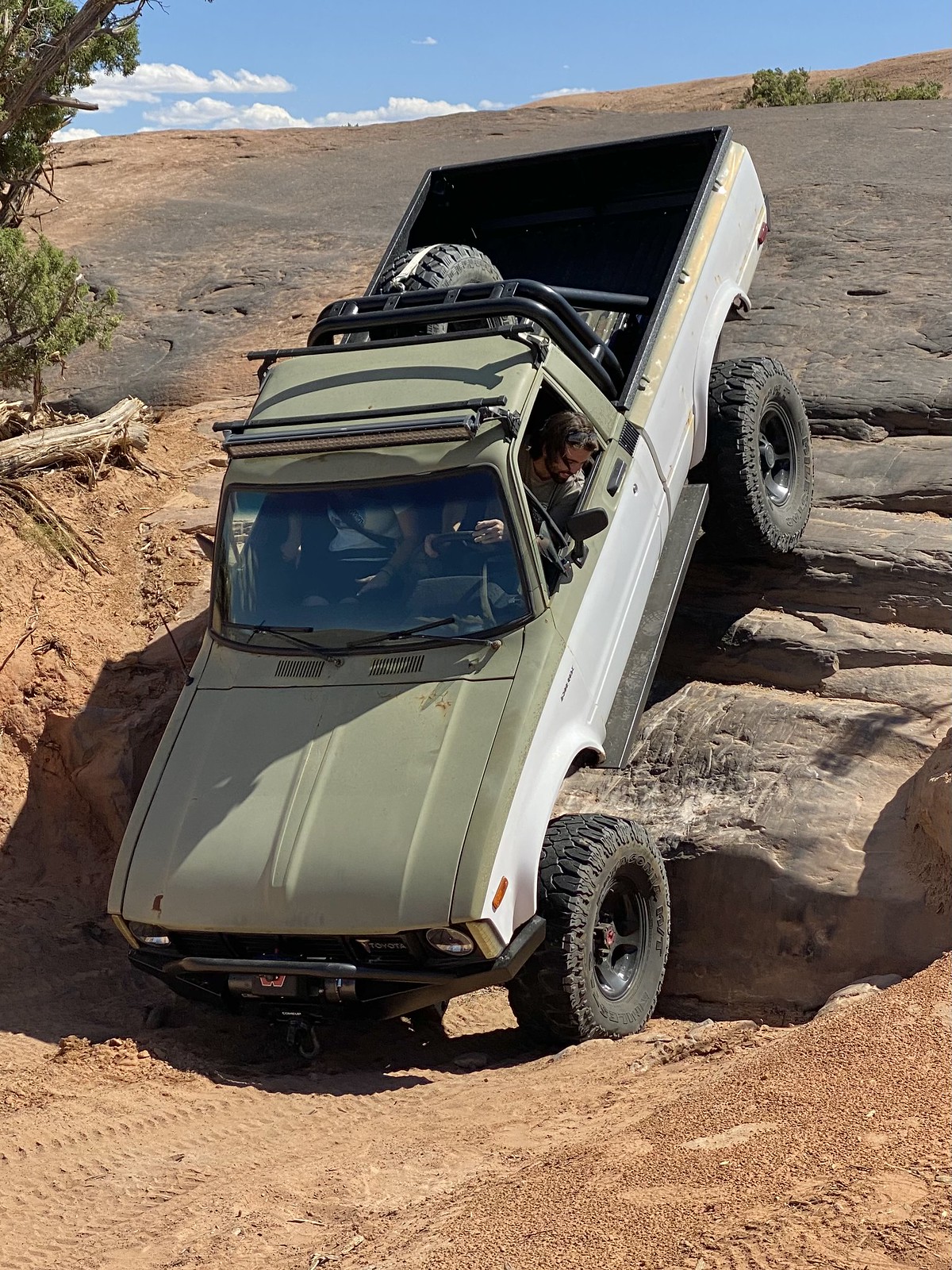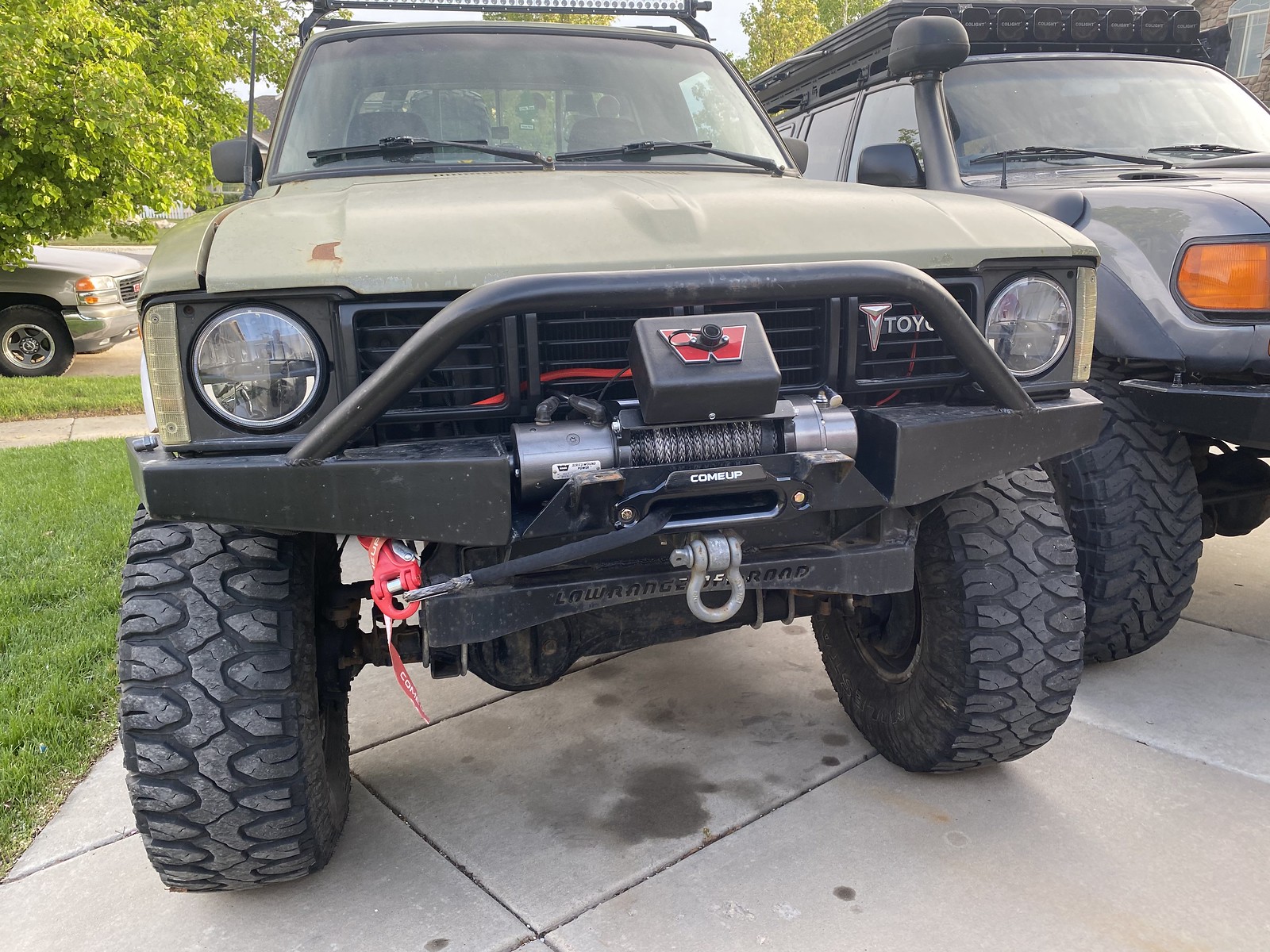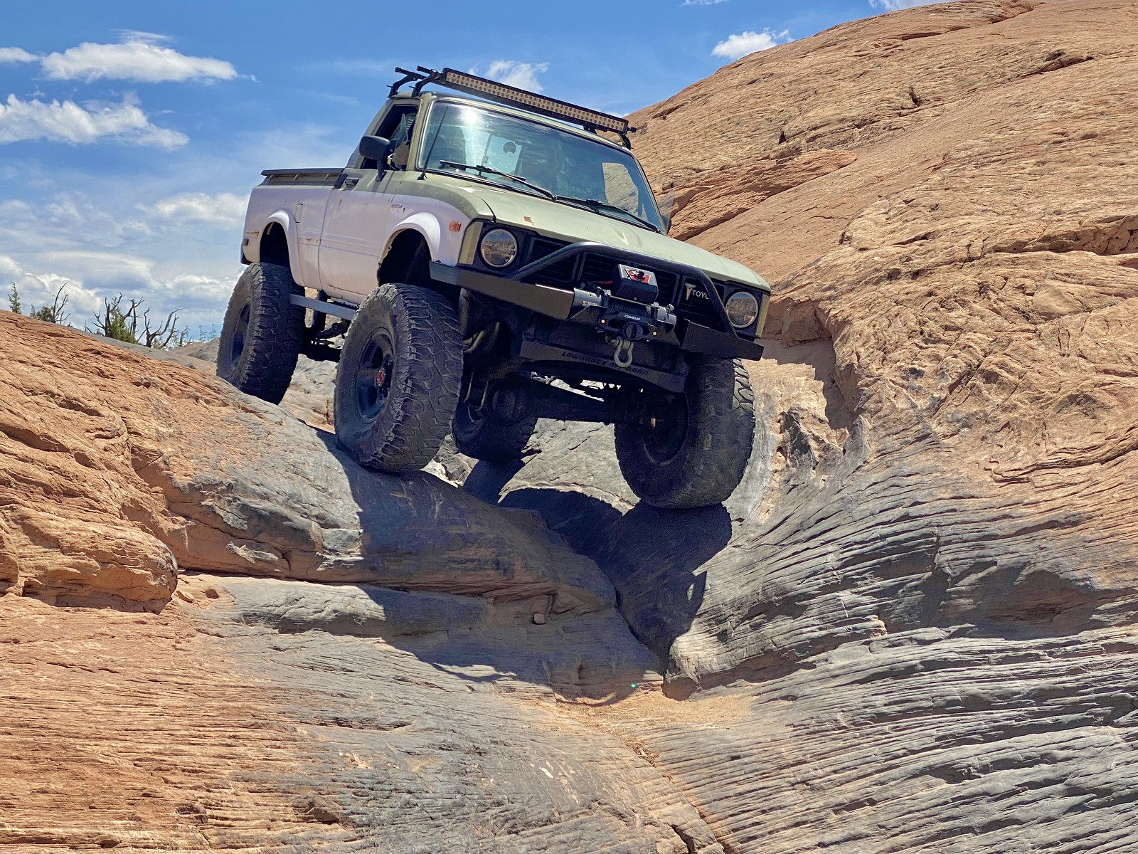 Lastly we addressed some of the suspension. The Doetsch Tech shocks were totally worn out and needed to be replaced. I had replaced the Slinky shocks in my 80 with some dual bypass shocks and had the 2.5 adjustable shocks that came off the cruiser so we decided to modify the shock mounts to accept the Slinky shocks. These are pretty firm since they are valved for the cruiser but setting them on the softest setting has been acceptable on the little truck. My son will have them rebuilt and valved properly as soon as he's saved up the money to rebuild them. But these are working soooo much better than the old DT shocks.