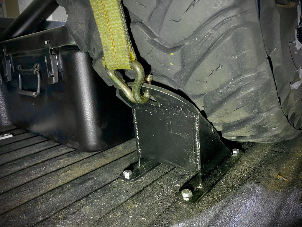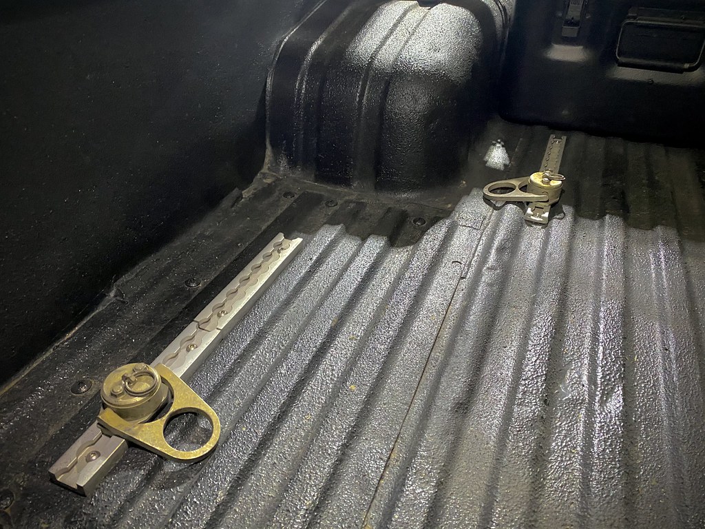 Untitled by Adam Tolman, on FlickrAdditional tie-down tracks using Mil-surplus tie-downs from a C-130 cargo plane. Total overkill for this little truck but they're pretty cool parts.