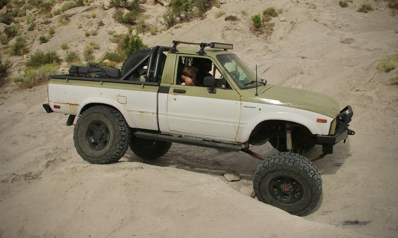Untitled by Adam Tolman, on FlickrLastly we addressed some of the suspension. The Doetsch Tech shocks were totally worn out and needed to be replaced. I had replaced the Slinky shocks in my 80 with some dual bypass shocks and had the 2.5 adjustable shocks that came off the cruiser so we decided to modify the shock mounts to accept the Slinky shocks. These are pretty firm since they are valved for the cruiser but setting them on the softest setting has been acceptable on the little truck. My son will have them rebuilt and valved properly as soon as he's saved up the money to rebuild them. But these are working soooo much better than the old DT shocks.