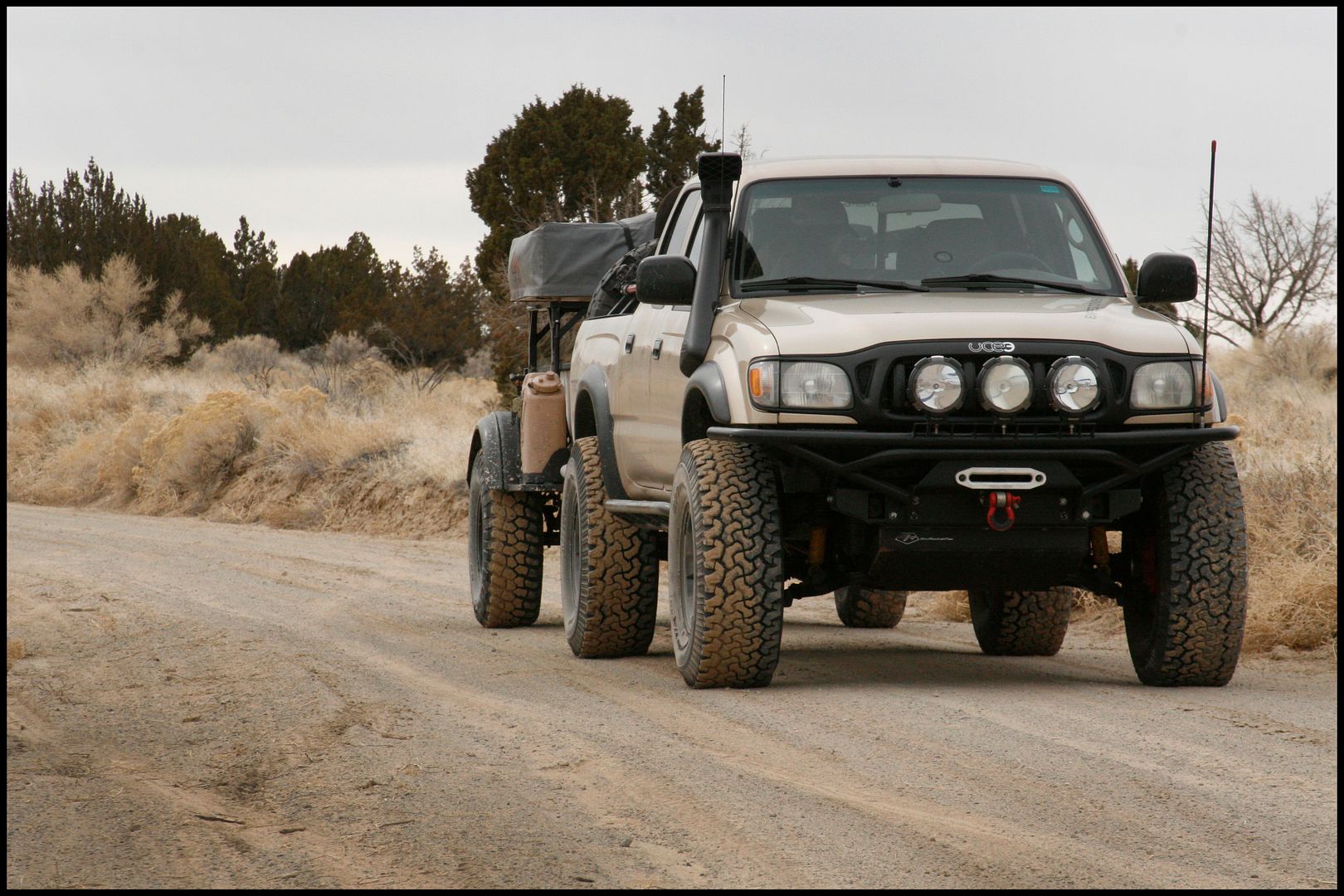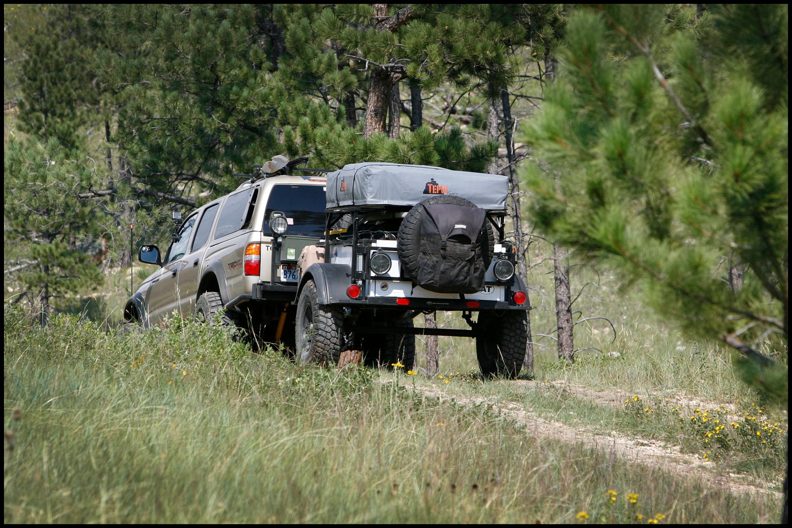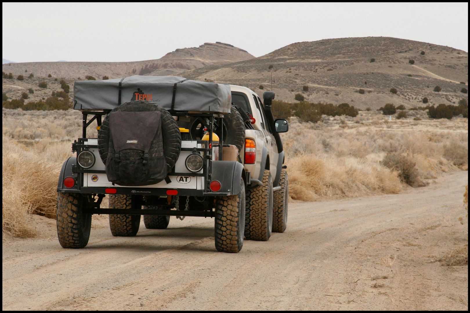 Well one came up. I took it out on Sunday and and jacknifed it (on purpose) but did something stupid. I knew I was going to jacknife it and was waiting for the sound of the tongue bottoming out against my rear bumper and took my eyes of the mirror for a second. Well it turns out that the way my rear bumper is trimmed up toward the outside corners allows the tongue to not bottom out against the bumper but actually slide underneath the bumper. That, along with the lock-n-roll that allows it to rotate past 90* I jacknifed it a little too far and the top lip of the trailer tub came in contact with my rear fender flare on the Cruiser. Not a big deal (other than a crack in the fiberglass flare, since I wasn't paying attention), but I need to figure out a way to keep the trailer from over-rotating in a jacknife situation which will definitely need to happen from time to time on the trail.