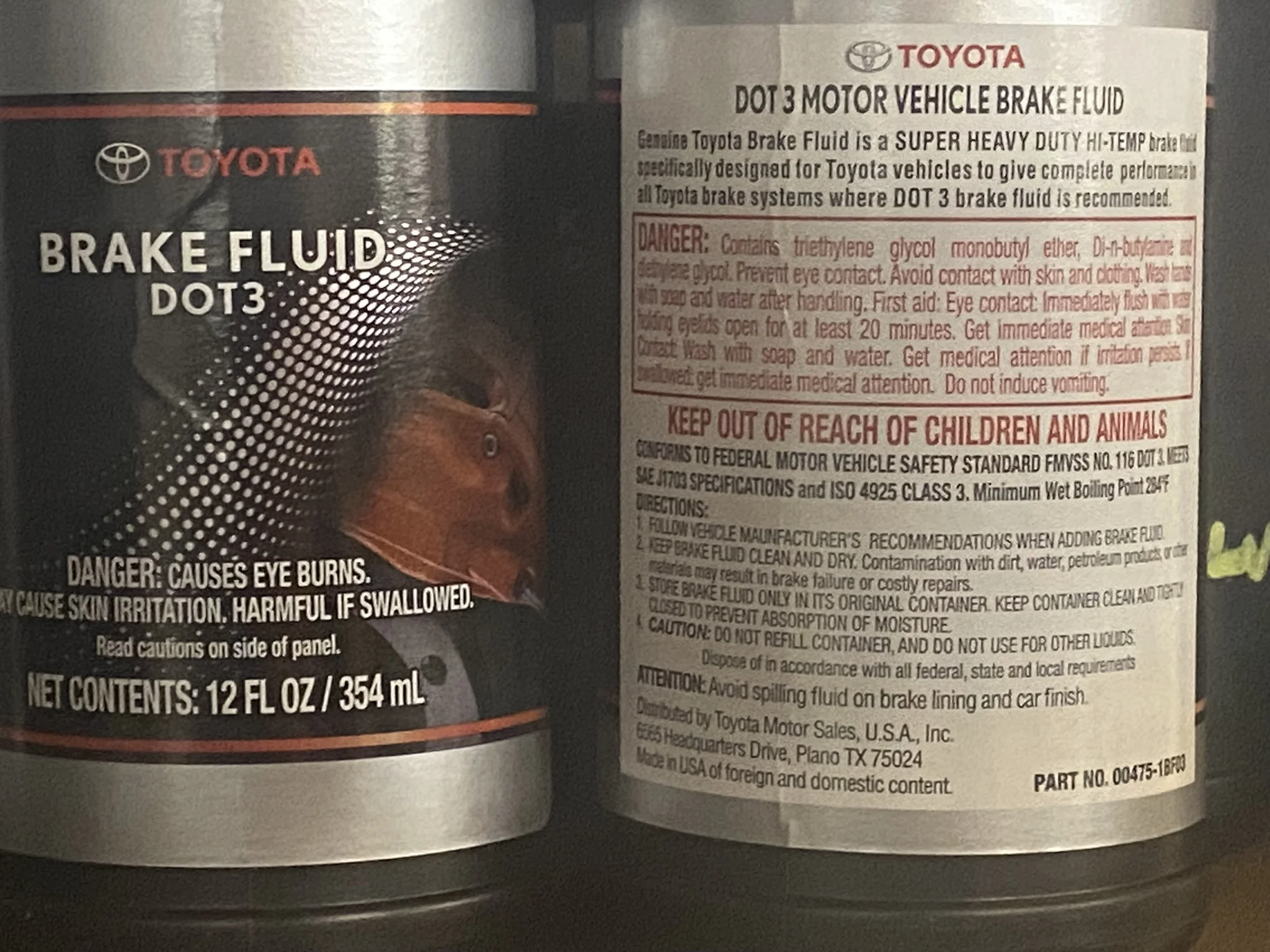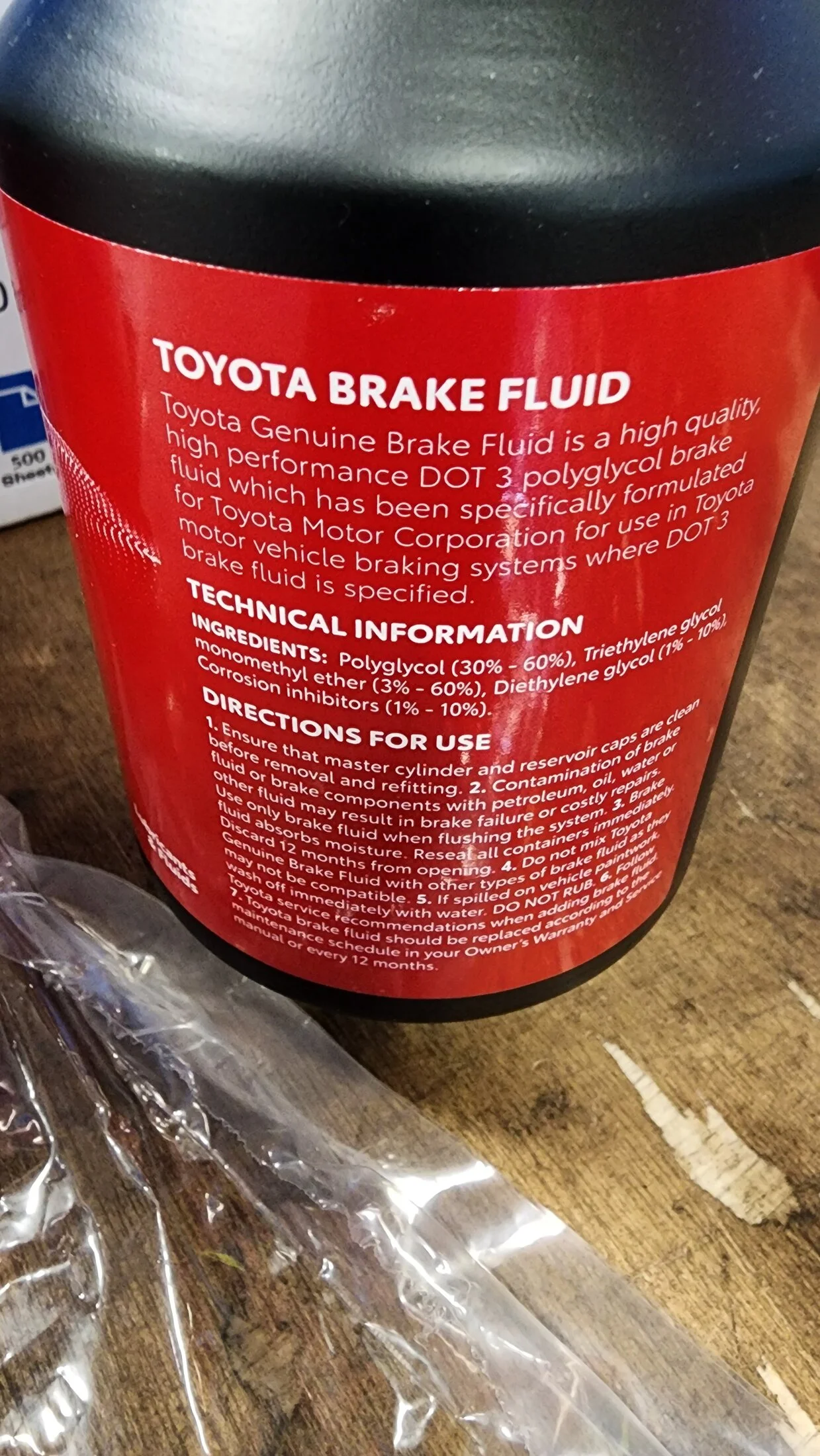 Those bottles of brake fluid from Toyota in Australia you have, are different than we get in USA. They give more info on ingredient % and shows a difference.Hi all.