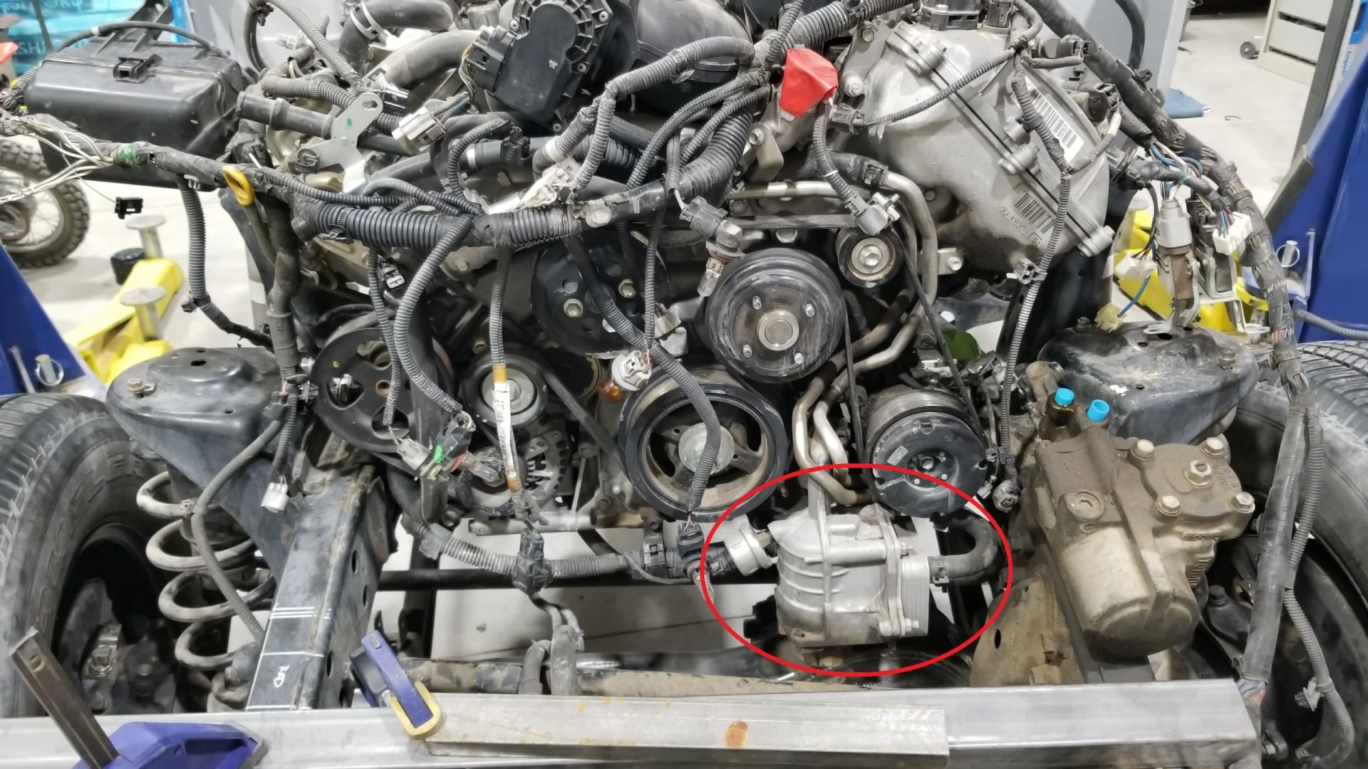 I took the front springs out and the the frame lower all they way to check clearance. The part circled in red is the oil filter/oil cooler/pressure relief valve. It did make contact with the front diff at full bump, so I knew I had to relocate it.