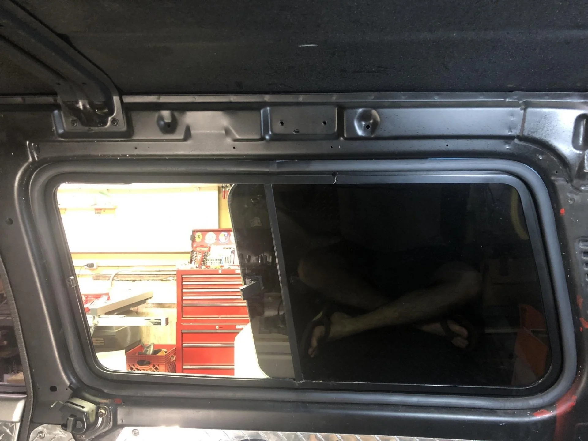 Heres a few pics from my 60 with no headliner. The two holes in the rectangular cutout above the center of the window are threaded M6-1.00 and I imagine thats where you would mount something. The outboard holes have no thread. Don't judge me on the diamond plate, it's on my list of things that need to go. Hope this helps.