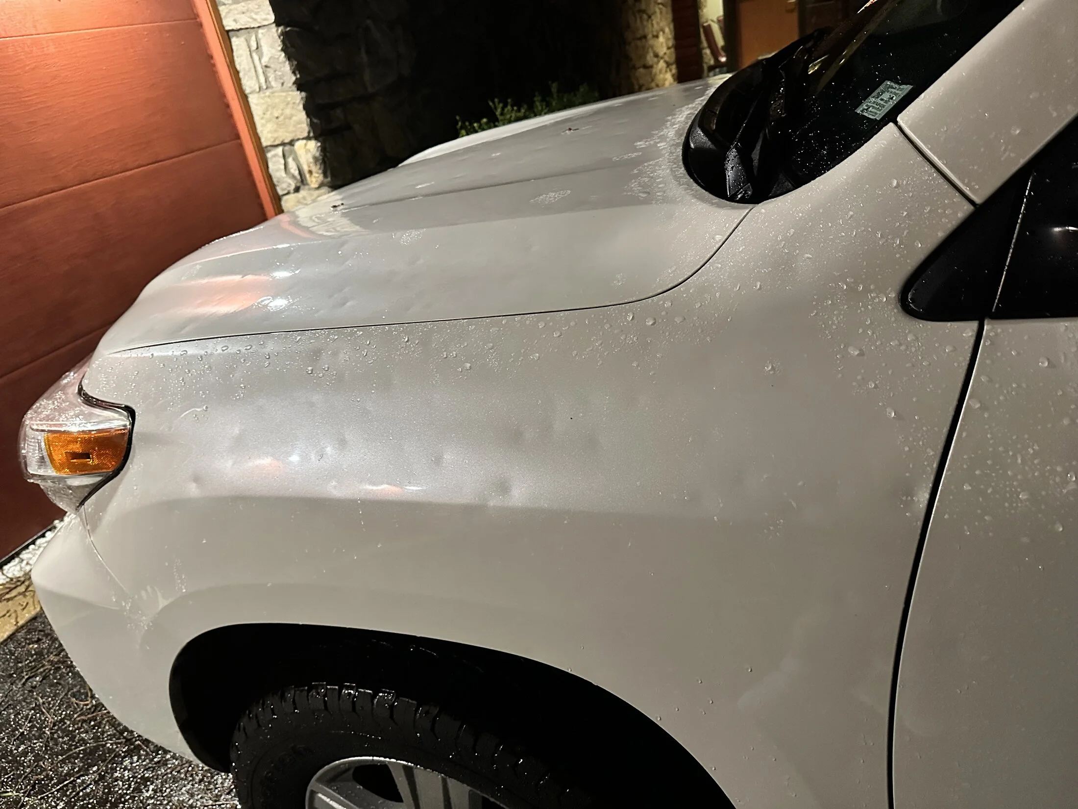 I had some hail damage on my old 200. Not nearly as many strikes, but a few good dings, mostly on the hood but a few random on the side panels. Thankfully was able to get home and park it in the garage mid-storm. My shop had a PDR expert that was able to get them all out. I'd like to see more detailed photos, but I agree with another poster that replacing the hood and putting on a full roof rack would do a lot, and see about some PDR on any other glaring side dings. Live with the few digs in the pillar you can't fix. Glad I don't live in hail country anymore.