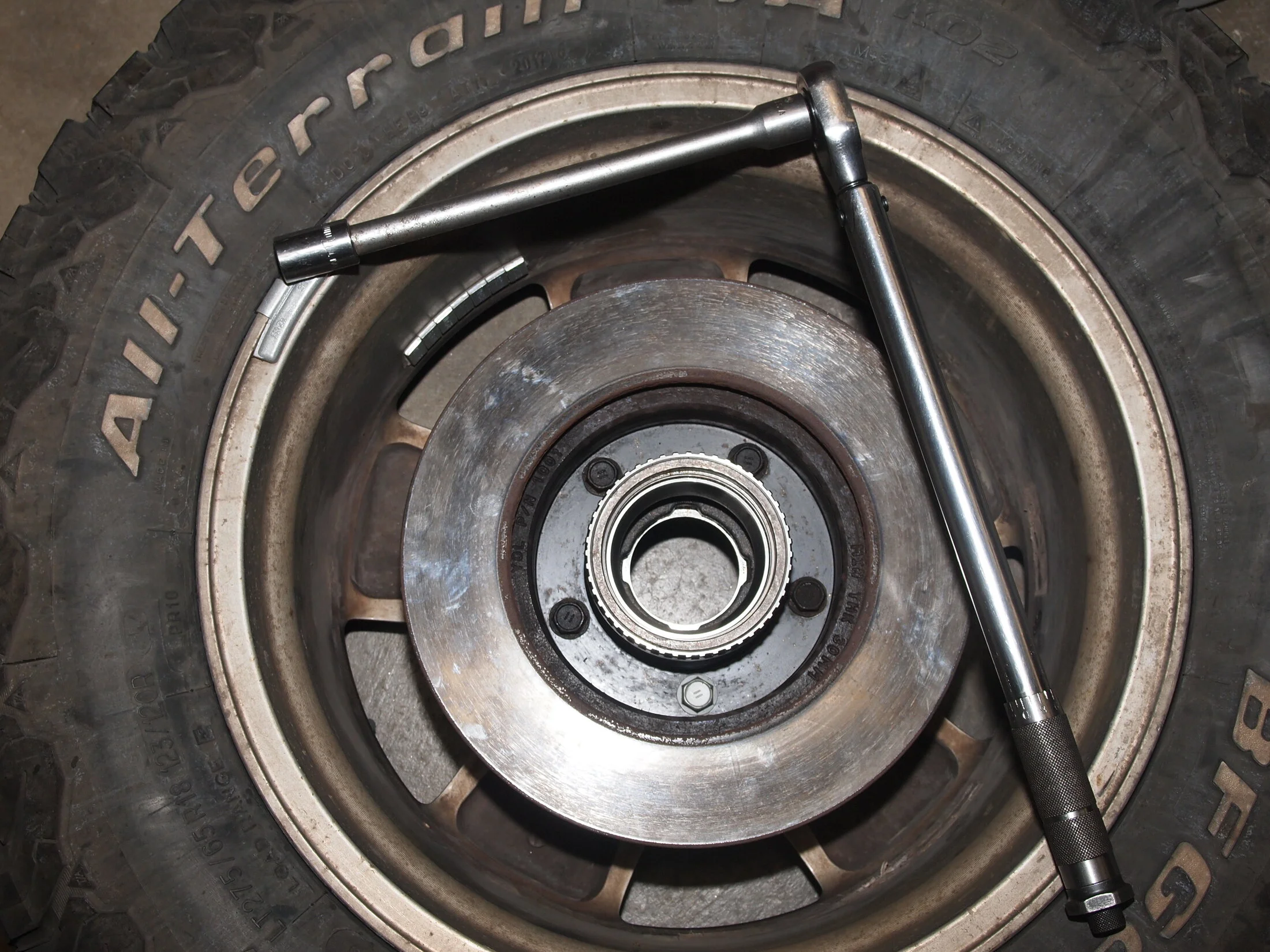 my $.02 on the wheel bearing torque. Don't worry about fish scales and torque specs. While you have access to the bearing preload nut, mount the wheel and tire with a few lug nuts. Grab the tire at 12 and 6 o'clock and wiggle. Torque the nut until there is little to no play.