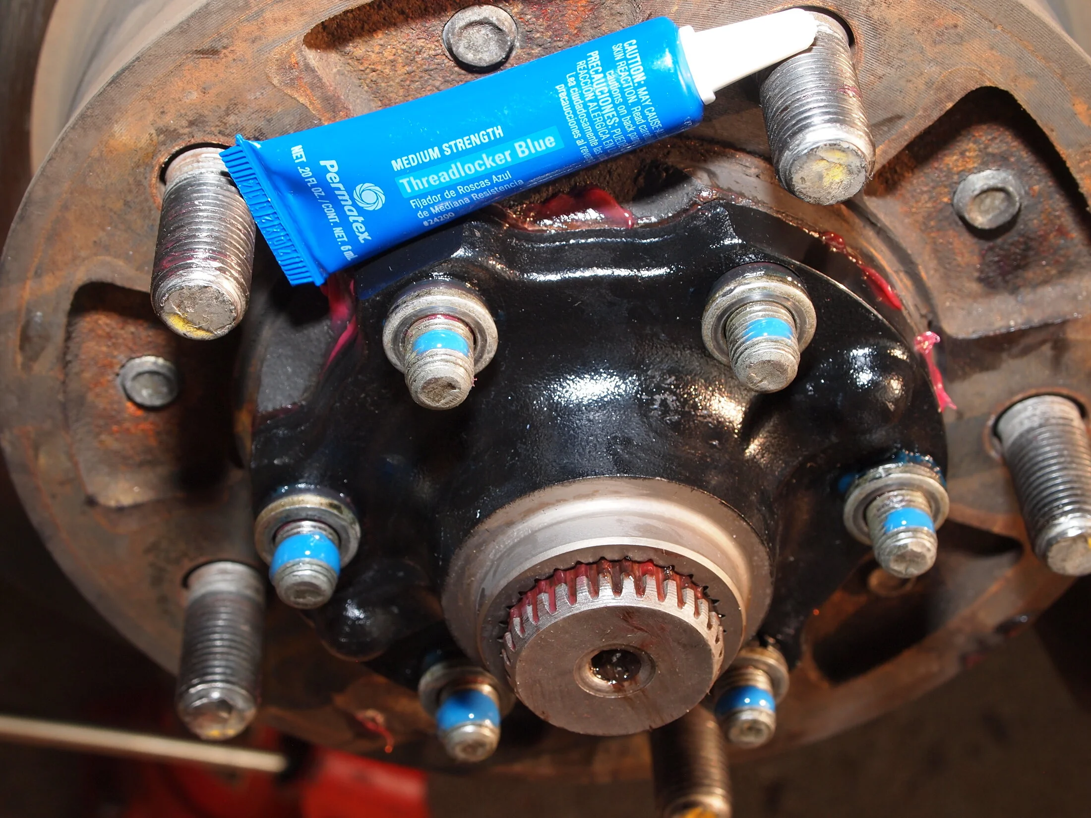 FSM, states: hub flange (HF) nuts as non reusable. New HF nuts threads are sealed. If threads of HF nuts, not stretched/loose. I reuse them, with some blue on the threads. The 24ft-lbf torque, need not be reduced for the lubed threads. Since torque spec, takes into consideration already.