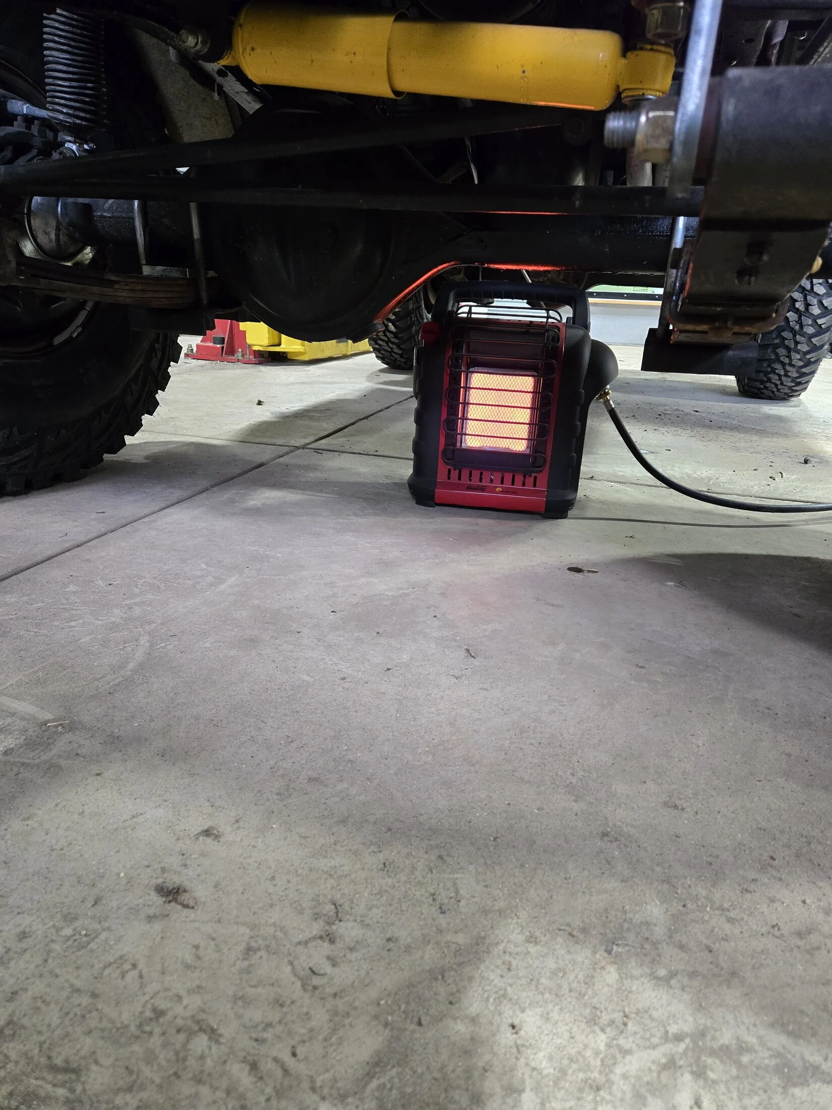 23* F this morning, so I hooked up my block heater and let it warm up for an hour then pulled it out of the shop and took it for a spin to check the p/s and new tires out. Checked tire pressure before I left to see what the shop set them at. 3 were at 35psi and one was at 40psi. Set them all at 30 and went for a ride. They road pretty good but ended up going down to 20psi and may go to 15 once a drive it some more. Steering box that I bought from a guy on Fakebook marketplace leaks. No biggie. I will rebuild it this spring and put it on the shelf as a spare for either 40. I hit the easy button on a new one from Summit, because it's too cold to sit out in the shop to rebuild it now.