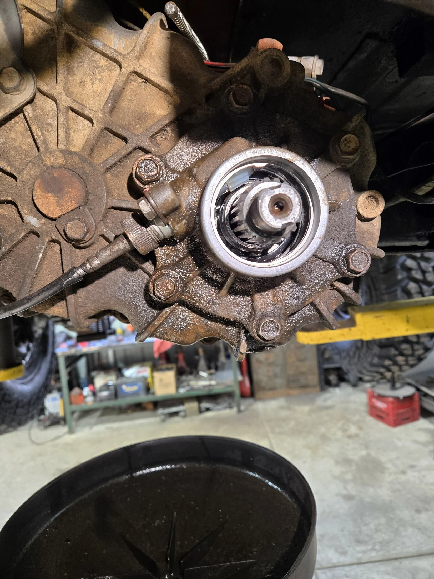 This morning I pulled the rear output seal and replaced it. I would say it was pretty worn. As soon as I finished that, brown santa showed up with my new driveshaft from Tom Woods. They are so nice. Going to refill the trans and tcase and take it for a spin this afternoon hopefully.
