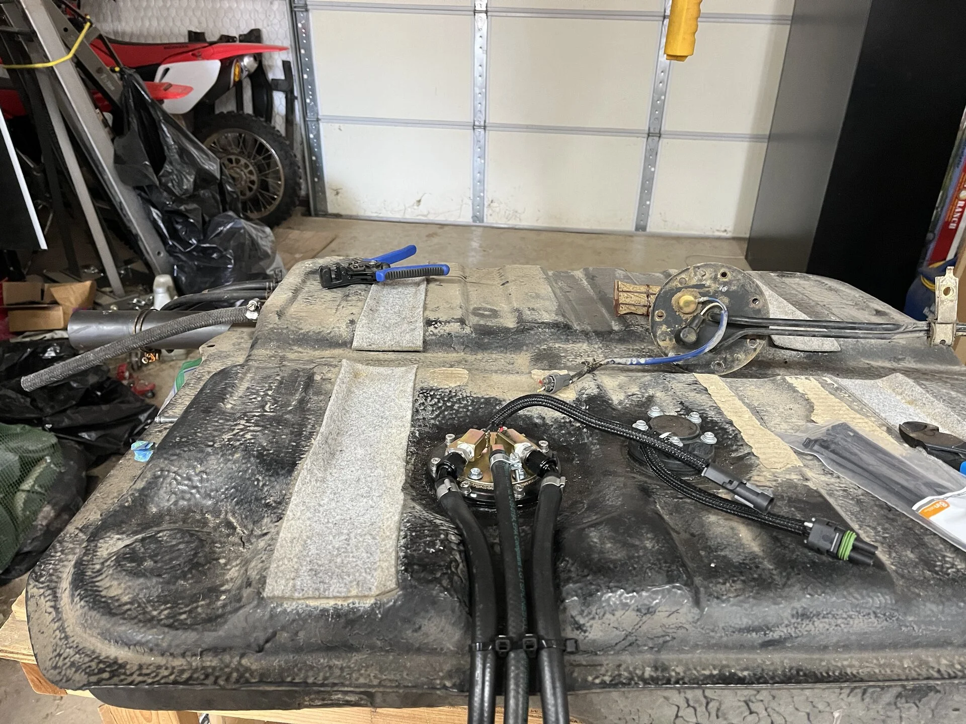 Nice to see my adapter in useI’m doing a 6.2L crate with 6L80e. It came with an independent relay for the fuel pump. Here’s the wire. I ran a test wire from the pump end to confirm continuity. It’s the bottom relay, just slide it off its post and unplug it. I jammed a small connector tool in there to release it from the plug so I didn’t have to cut it. If you go with a tanks inc FP, I can share my PN along with the guy here who makes a conversion bracket for 100% screw into existing 62 fuel tank.