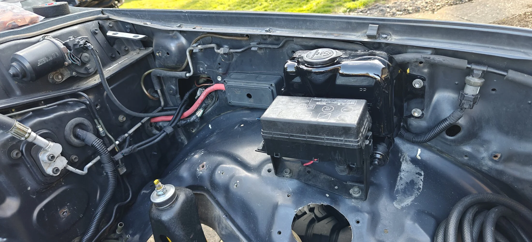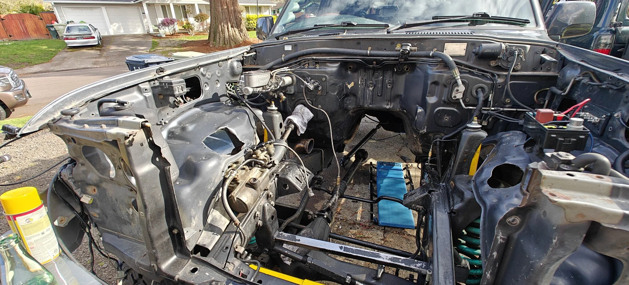 Also doing a "full" wire tuck while I'm in there. Ideally there will only be two visible harnesses, one on each side. One for the alternator, oil pressure sensor, egt probe and block heater. and one for the FSS, fan temp switch, and starter solenoid wire. Batteries will be relocated to the rear, primarily to give me some much needed engine bay space. Also planning on covering my original intercooler piping holes and re-routing said pipes in a much more tucked location. No more block mounted lift pump and fuel filter, those are going under the rig on the frame.