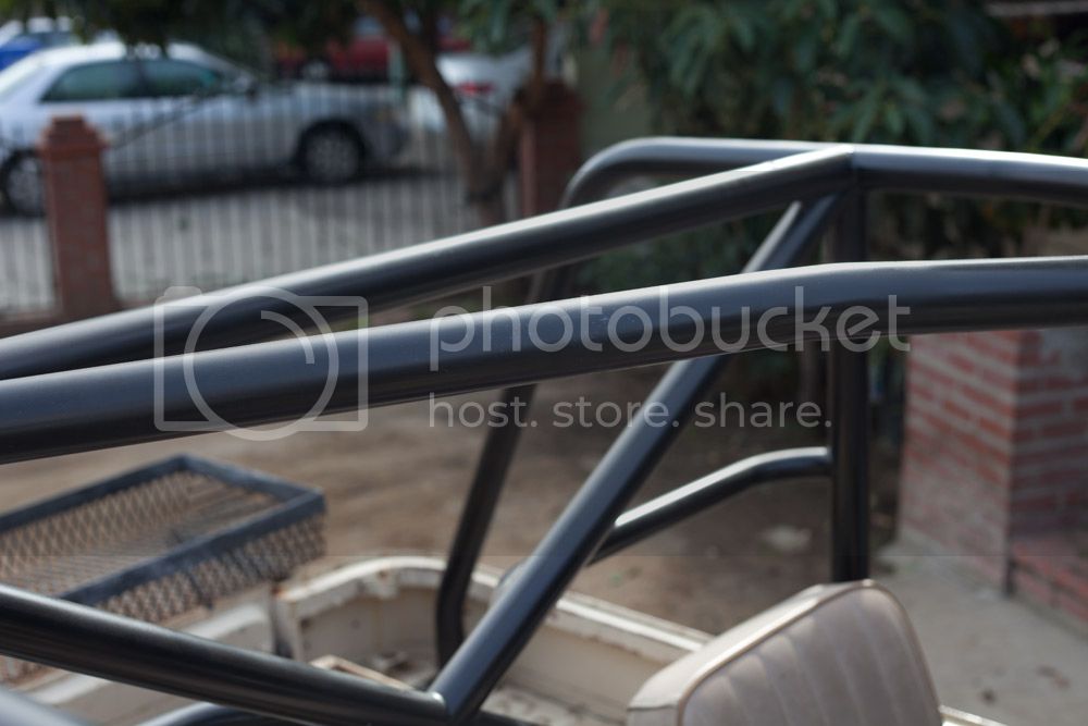 Here are a few photos of the cage. It's rustoleum black, but should probably be sandblasted and powdercoated. As you'll see in the photo, it's currently tied in to the frame on my truck via plates, but the frame tie-ins will be staying (In case I want to add a more simplistic cage later on). You'll get the cage as it sits, unbolted from the body/frame tie-ins.