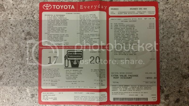 For sale is a 2000 Toyota 4Runner SR5 4x4, manual, in Desert Dune Metallic with 198,300 miles on it. I am selling it for a family member. This 4Runner has been a Colorado car its whole life. It was bought at Stevenson Toyota on September 14th, 1999 by my mother-in-law and sold to my sister-in-law in 2009, so it is a two owner car. This 4Runner comes with a thick folder of records including the original window sticker, purchase paperwork, and 4runner brochures. It has been garaged its whole life and it shows. The paint is in excellent shape with only a couple of nicks here and there (see pictures). Front seats are in great shape as they were always under seat covers since new. Features include rear locking diff, sunroof (works great and no leaks), Old Man Emu 2 in lift installed 6,000 miles ago, Clutch and timing belt done in the last 3 years, ski/snowboard rack, and recently installed Cooper Discovery AT3 tires. This was the last year the manual transmission was offered in the 4Runner. Everything works great. Clean Colorado title in hand. 9500 OBO Cash only.
