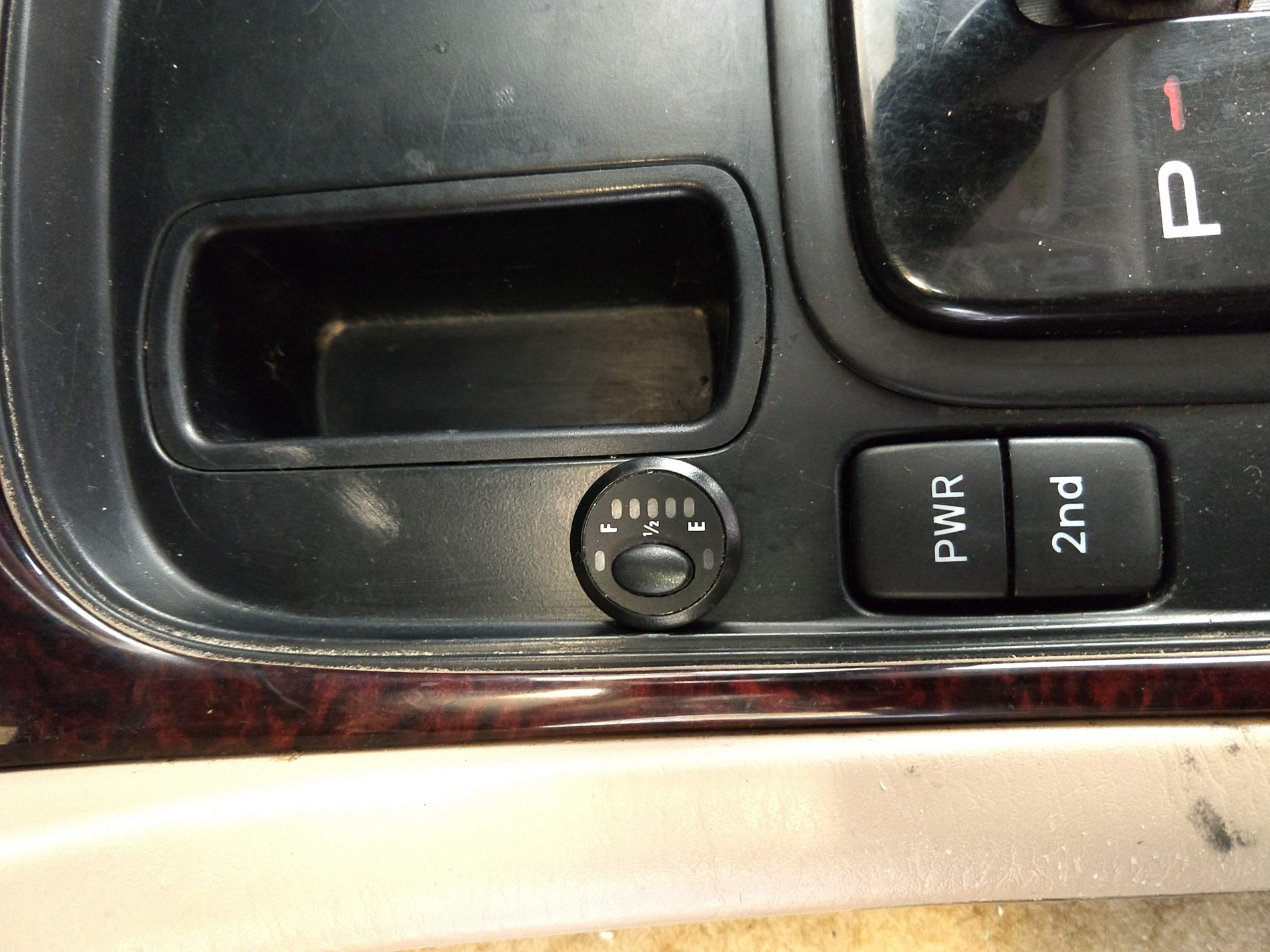 The fuel gauge/switch got mounted to the center console. LED lights show the fuel level, and the button turns on/off the fuel pump.