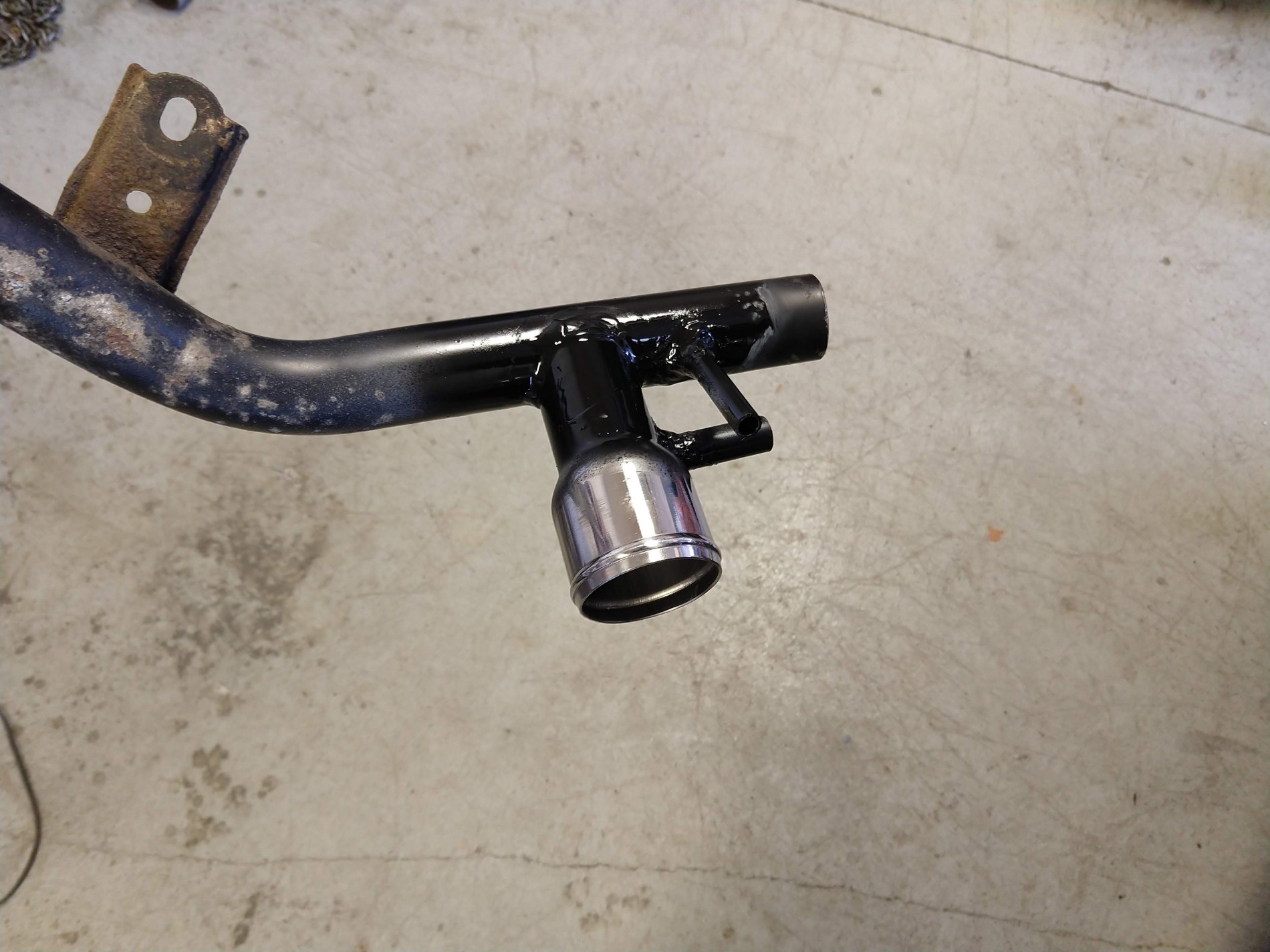 I used a piece of 3/8" brake line, and a piece of the 1/2" filler tube I cut away, to make the rest of the connections. The main filler tube sealed up perfectly, but uou can see I had some problems getting the smaller ones to seal after welding...I ended up chasing pinholes, and each time I welded one up I created two more. But I eventually prevailed, and coated the inside with fuel tank repair epoxy to kill any miniscule remaining leaks.