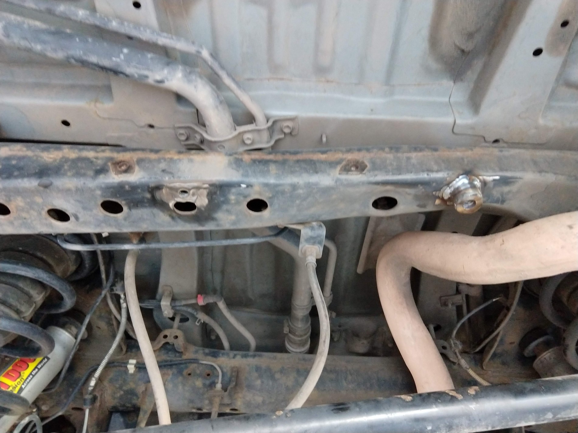 For the rear of the tank, I just welded a chunk of angle between the framerails, with holes for bolts/nuts.